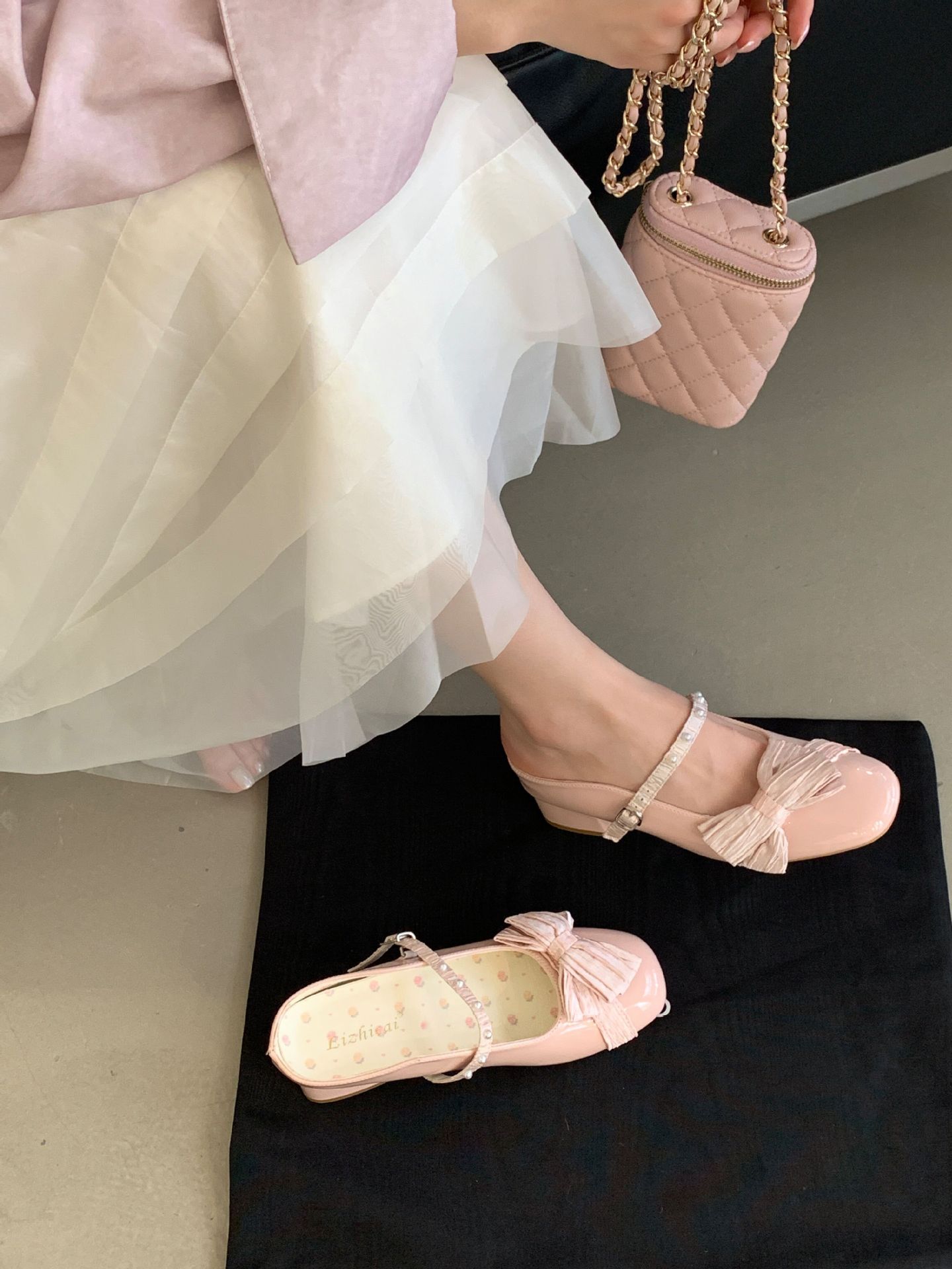 바오터우 하프 슬리퍼 여성 외투 신발 2025 새로운 두꺼운 굽 프렌치 보우 게으른 뮬러 슈즈스토어 가기