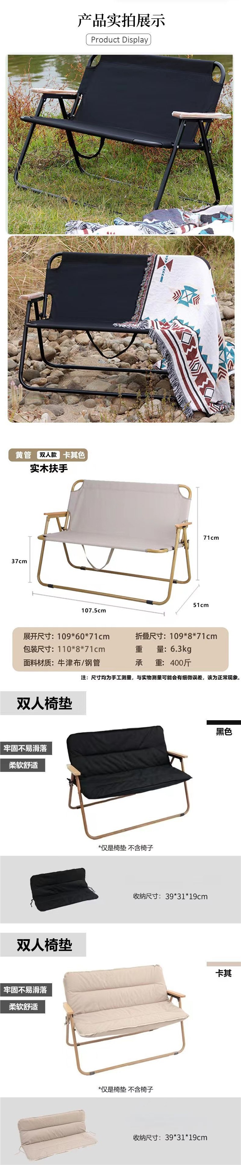 캠핑 접이식 의자, 스톨 의자, 휴대용 커미트 의자, 다기능 두꺼운 야외 2인용 접이식 의자, 면 쿠션스토어 가기