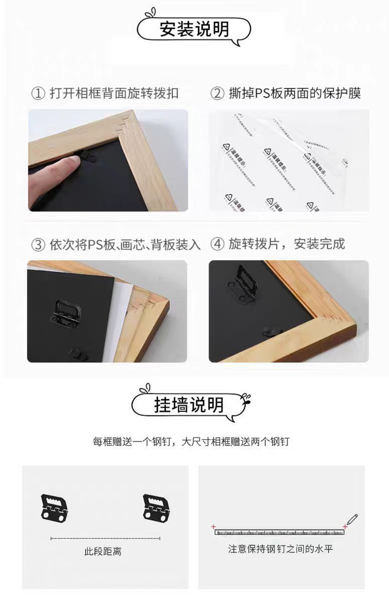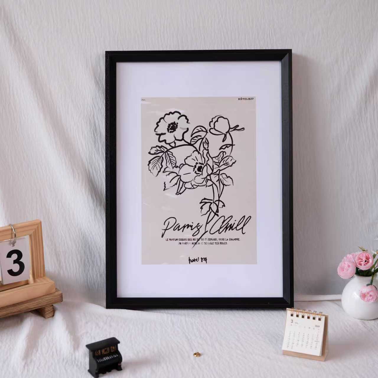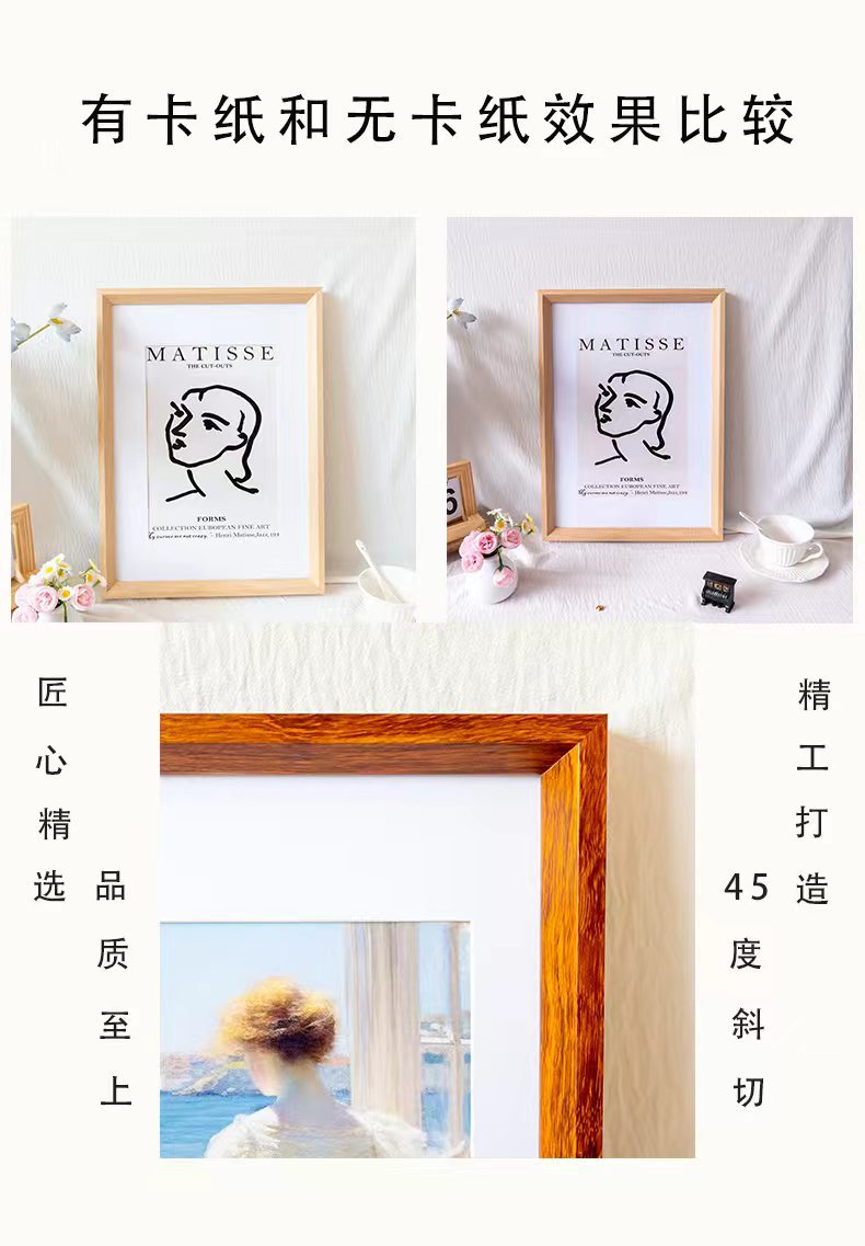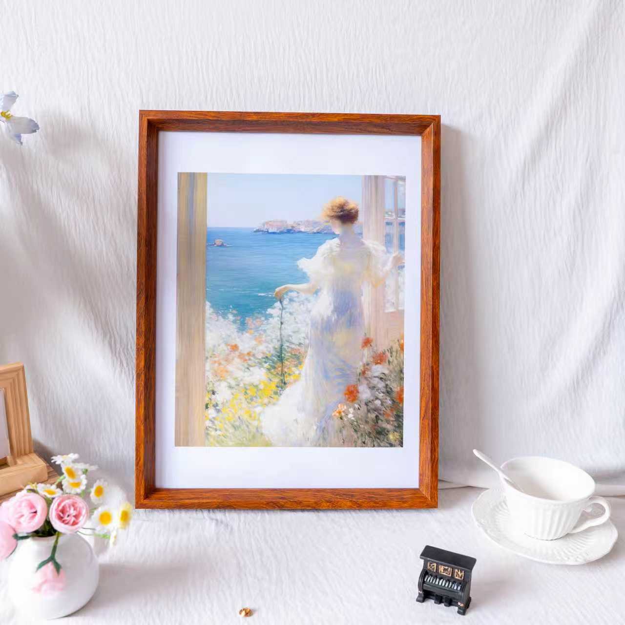 간단한 나무 사진 프레임 북유럽 스타일 유화 프레임 4K 복고풍 목가적 스케치 중국어 그림 16inch 프레임 A3 퍼즐 프레임스토어 가기