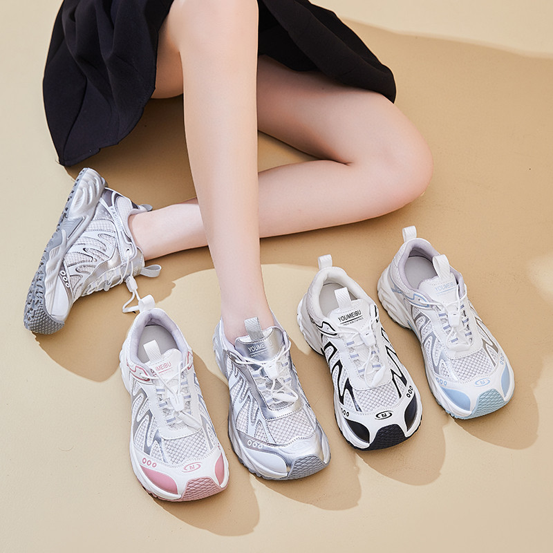 여성을위한 유럽 두꺼운 밑창 하이킹 신발 2025 여름 스타일 메쉬 통기성 하이킹 신발 캐주얼 야외 스포츠 아빠 신발스토어 가기