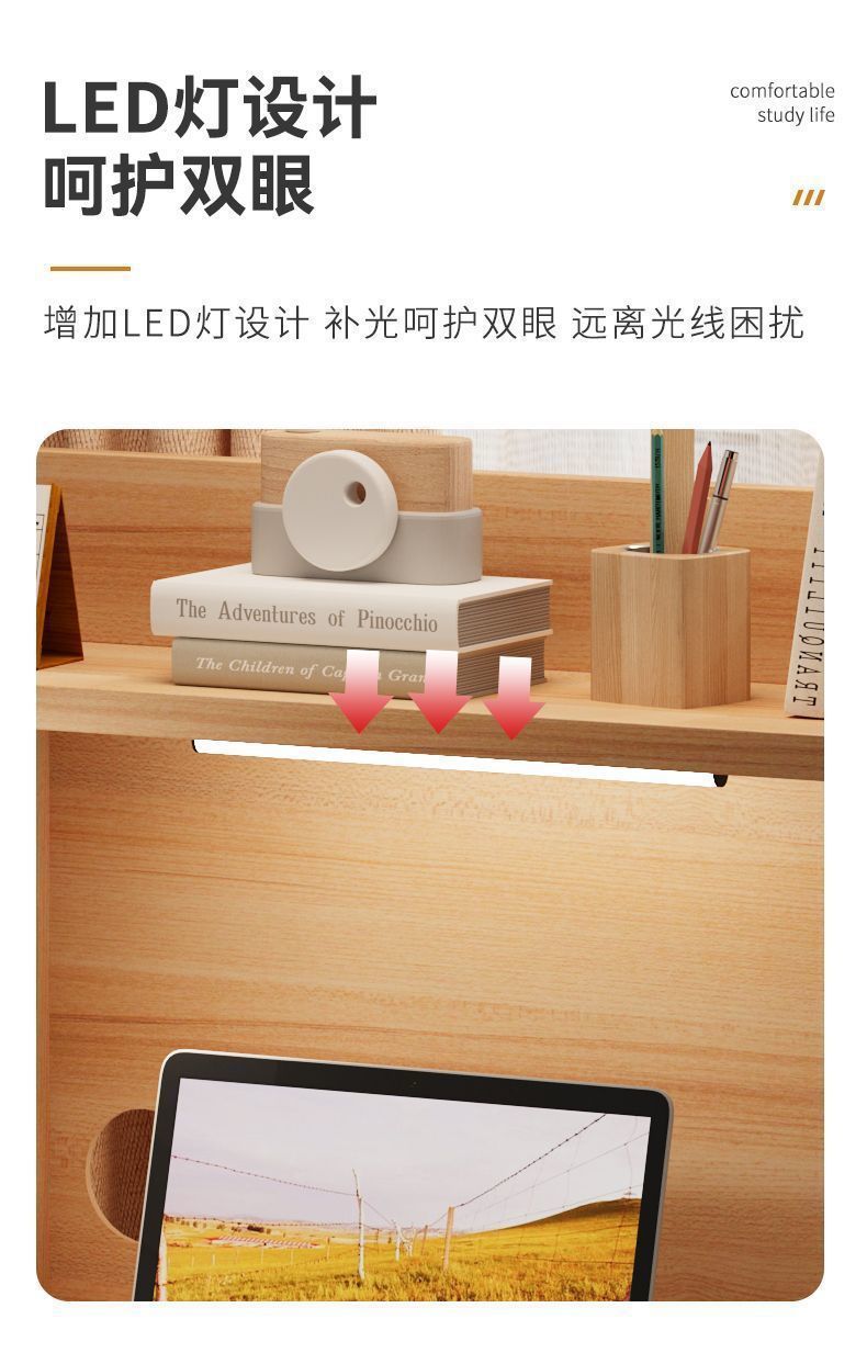 • 80cm 단풍나무 벚나무 + 책장과 조명이 있는 흰색 프레임