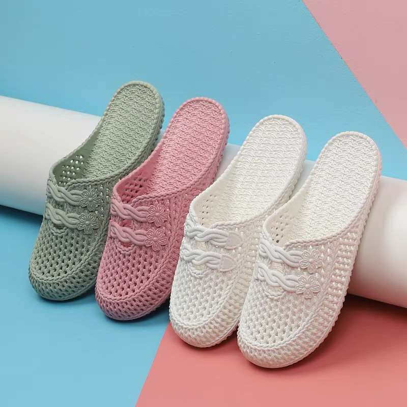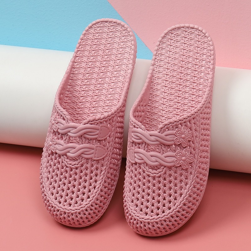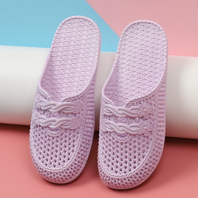 여성용 바오터우 샌들, 여름 플랫 패션 아우터 하프 슬리퍼, 중노년 여성용 방수 미끄럼 방지 비치 나막신