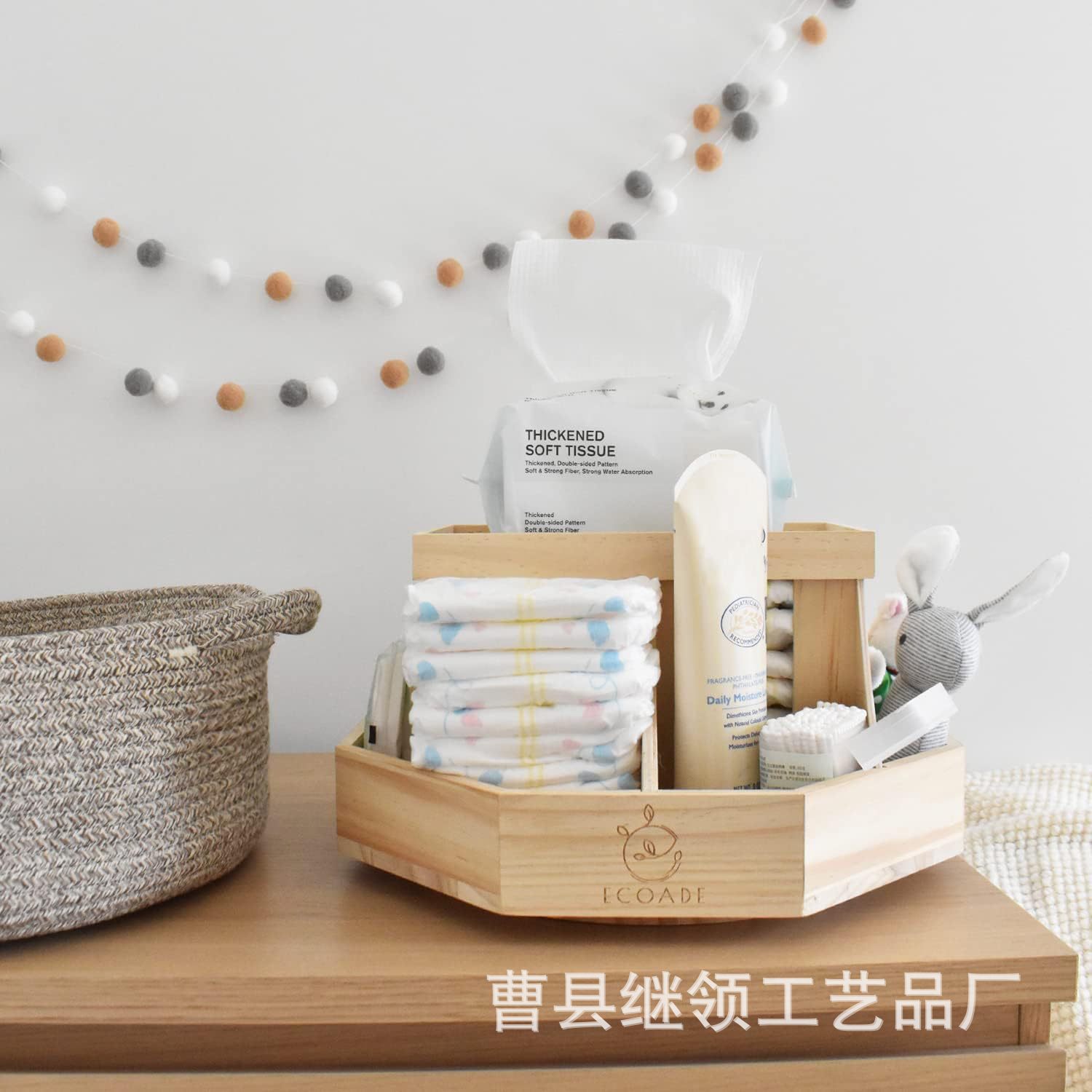 국경 간 아기 기저귀 보관 랙 나무 회전식 및 분리형 다기능 신생아 세면 용품 보관 랙