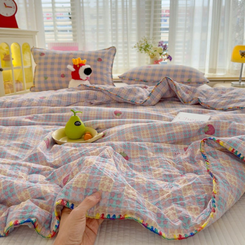 여름 시원한 이불 순면 어린이 세탁기로 세탁 가능한 이불 이불 코어 봄, 가을 에어컨 이불 싱글 얇은 스타일