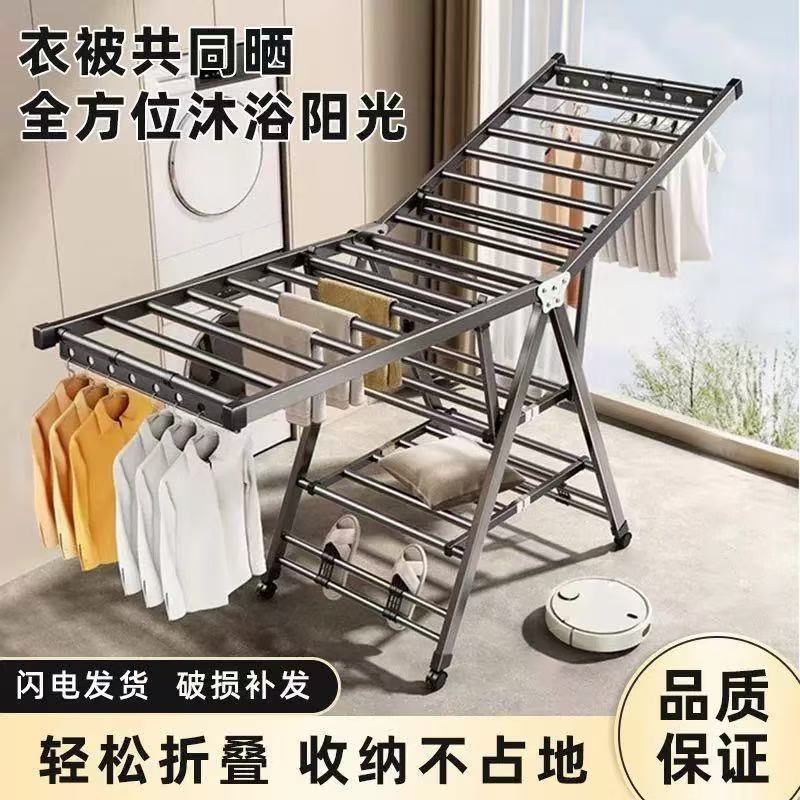설치가 필요 없는 접이식 옷걸이, 가정용 바닥형 아기 옷걸이, 발코니 옷 건조대, 옷 건조대 Huiyao스토어 가기