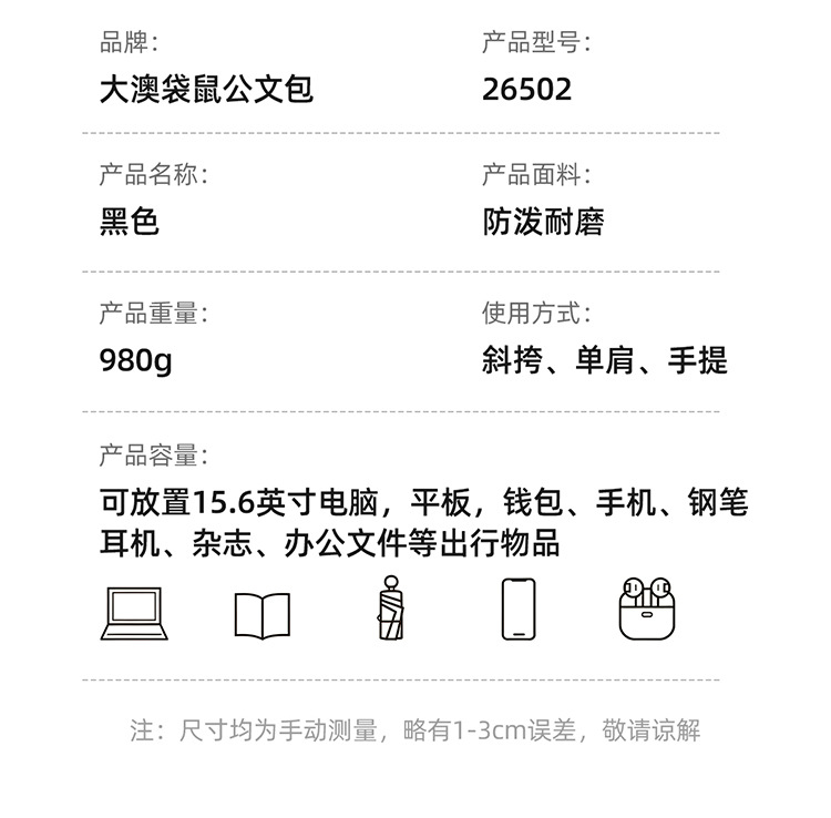 Da'ao 캥거루 비즈니스 옥스포드 천 핸드백 서류 가방 남성용 사무실 회의 문서 가방 컴퓨터 가방 남성용 재고 있음