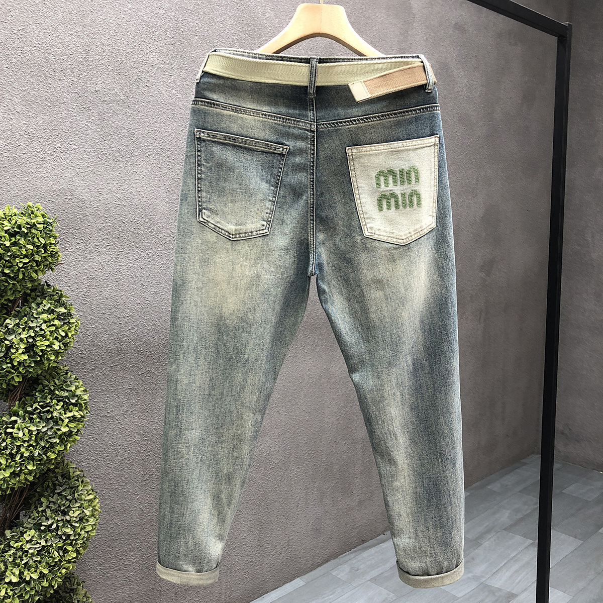 카운터 품질 얇은 밝은 색상 청바지 남성 슬림 스트레이트 바지 2025 봄 여름 청소년 바지스토어 가기