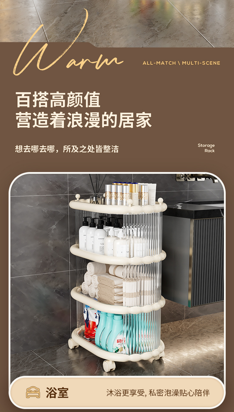 다층 모바일 스낵 보관 랙 바닥 스탠딩 트롤리 아크릴 보관 유물 침대 옆 선반 플라스틱스토어 가기