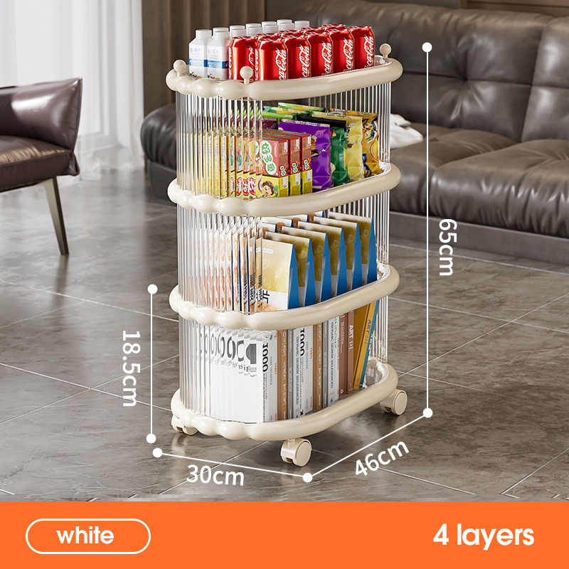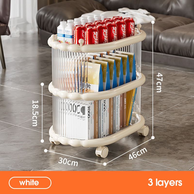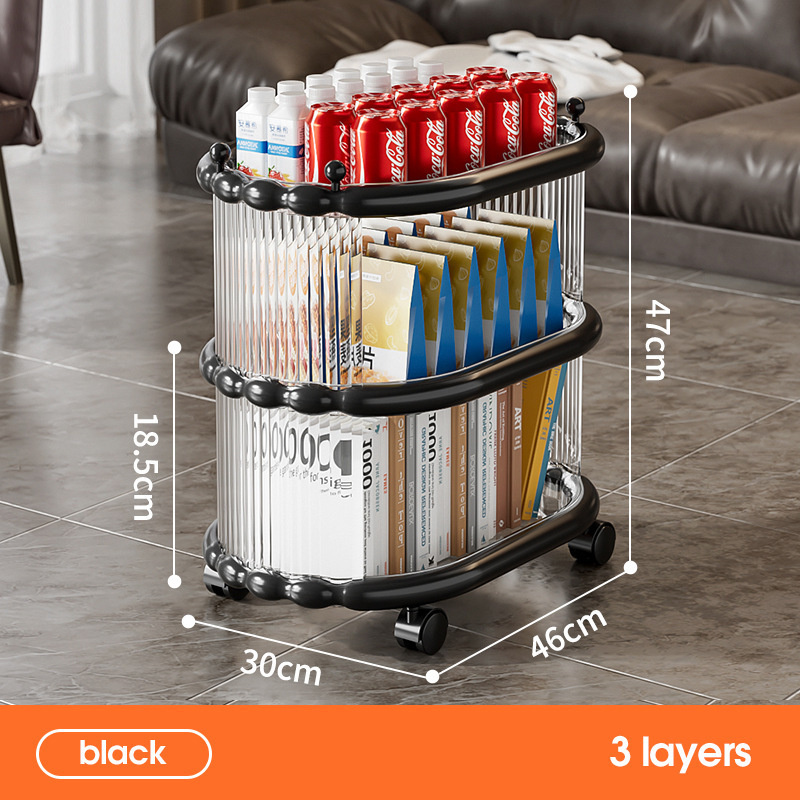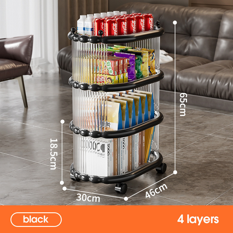 다층 모바일 스낵 보관 랙 바닥 스탠딩 트롤리 아크릴 보관 유물 침대 옆 선반 플라스틱