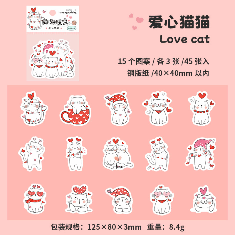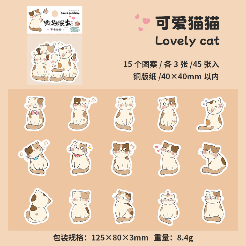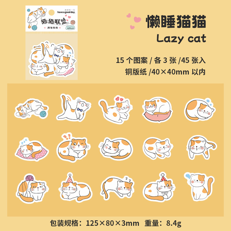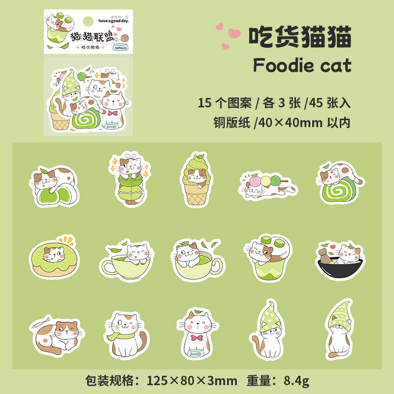 좋은 하루 "고양이 연맹" 시리즈 고양이 테마 코팅지 스티커 6종스토어 가기