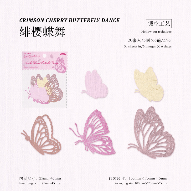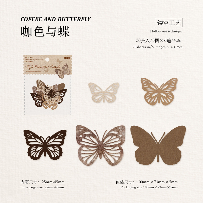 Mo Mo 나비 픽업 컬렉션 시리즈 재료 팩 30개 중공 나비 핸드북 DIY 재료 장식 베이스 8가지 스타일