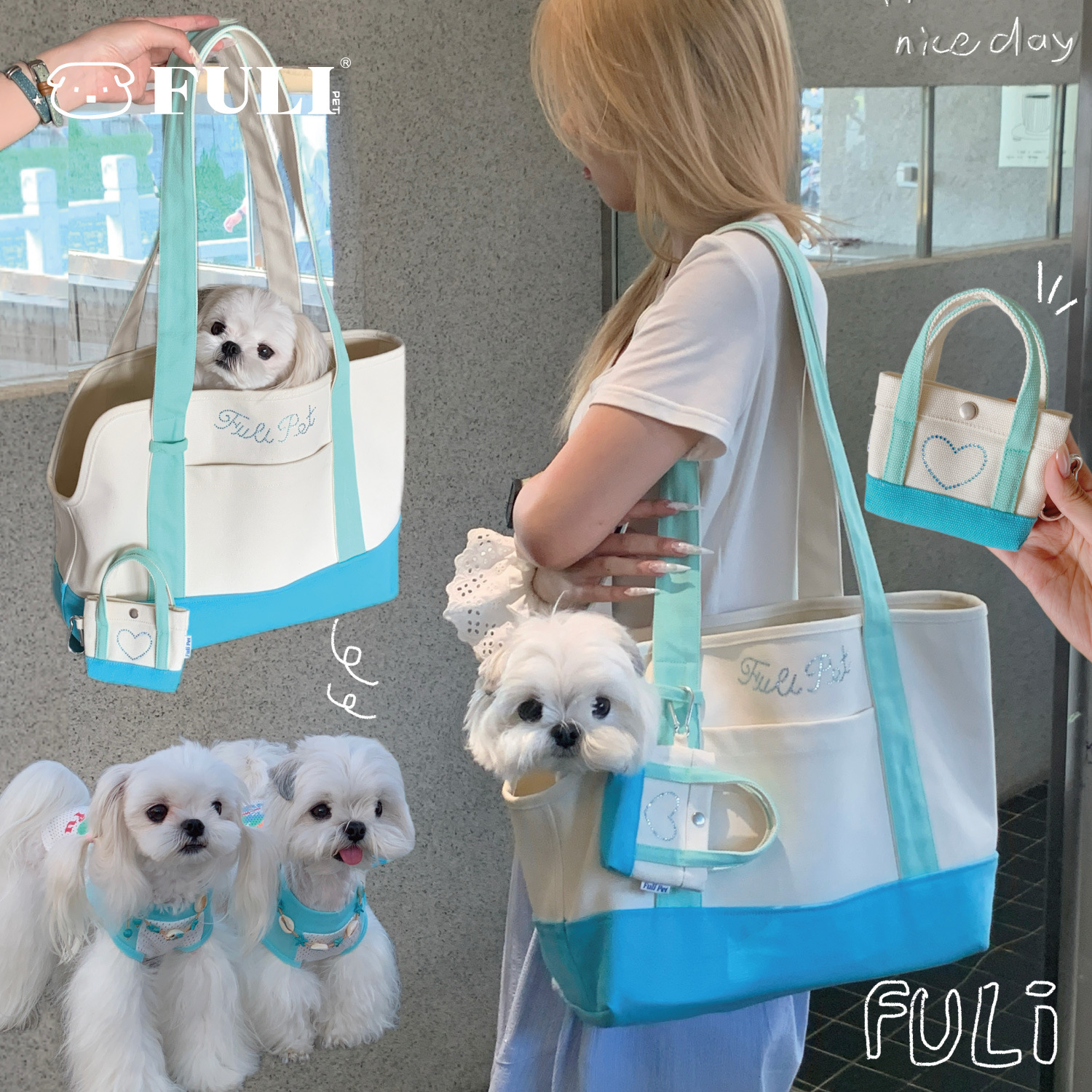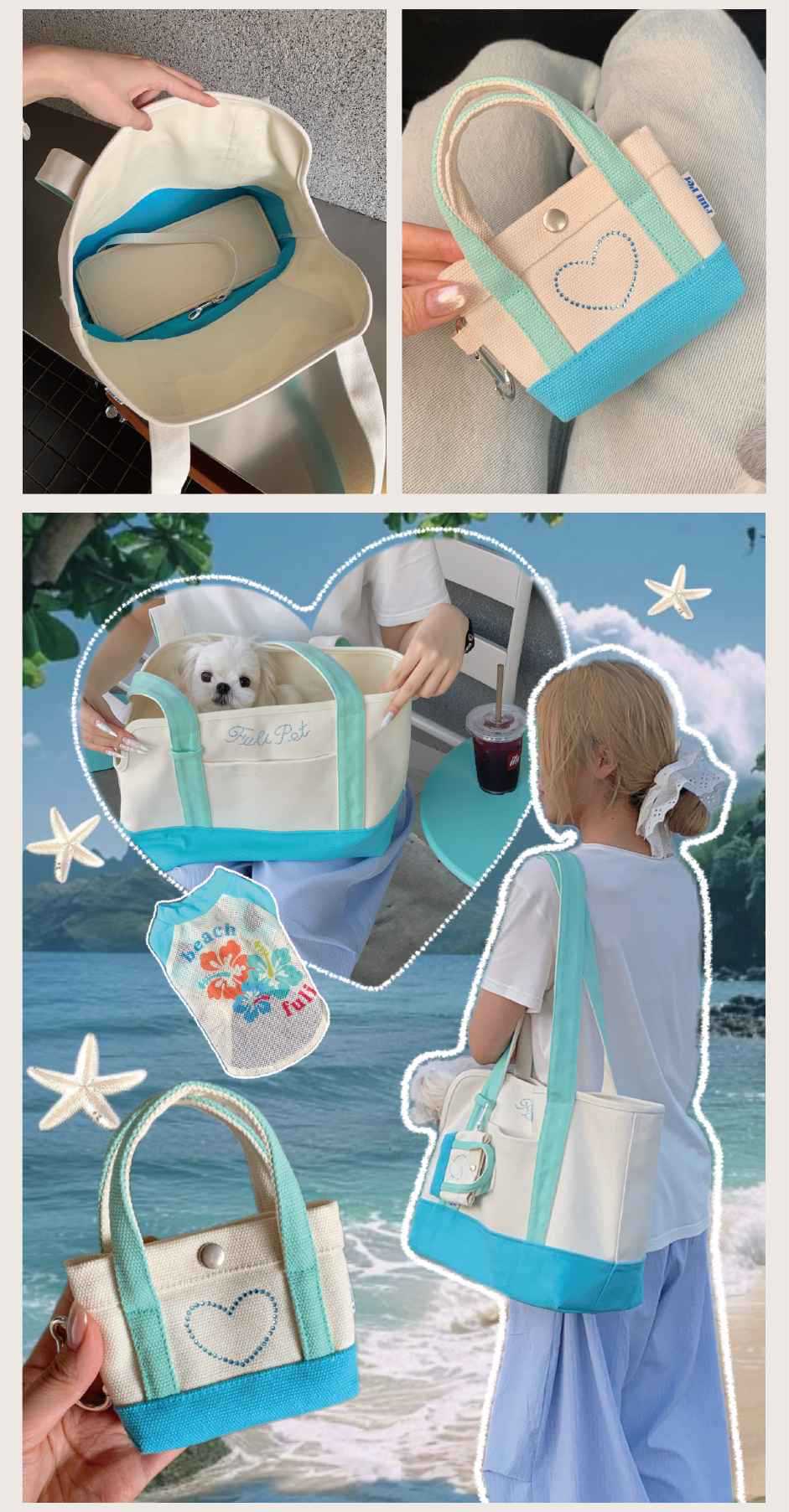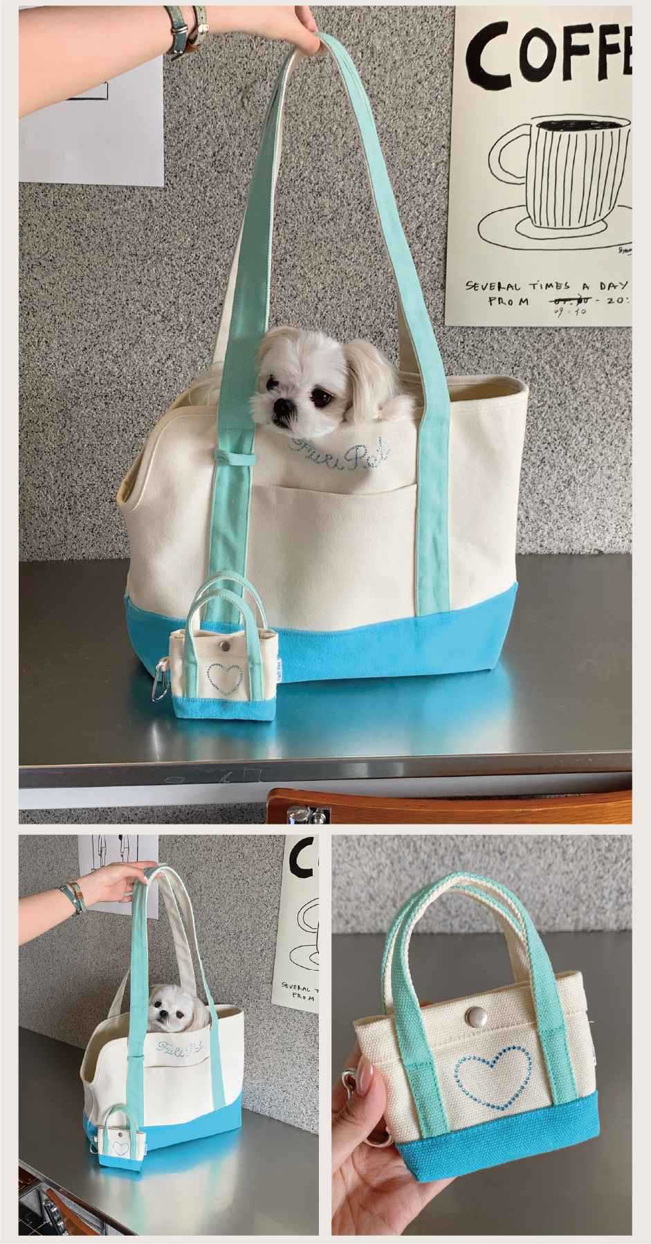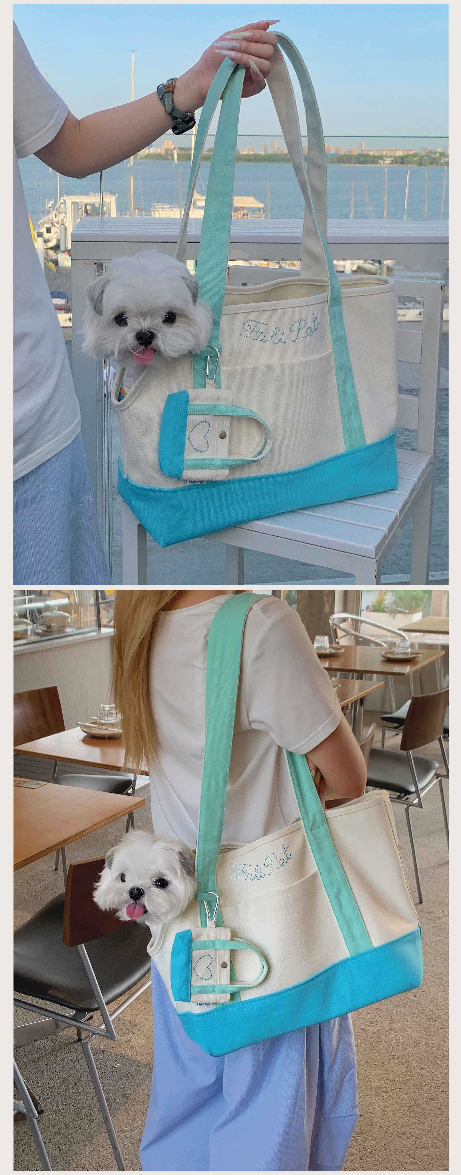 풀리펫 「민트 여름」캔버스 가방..시시견, 말티즈, 비숑, 슈나우저 애완견스토어 가기