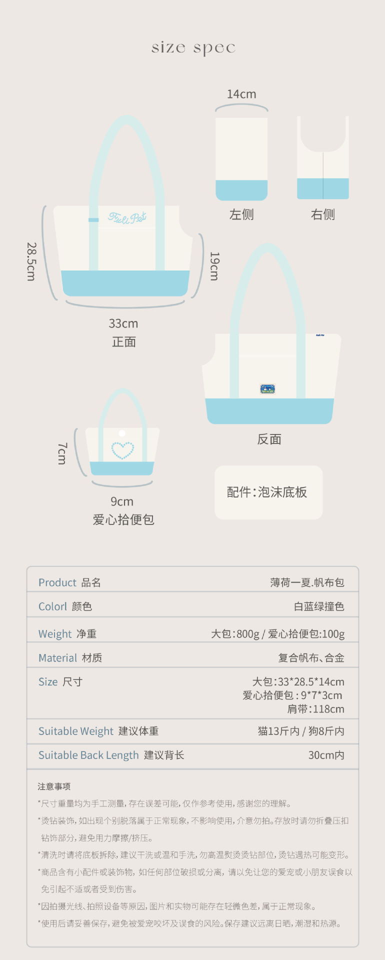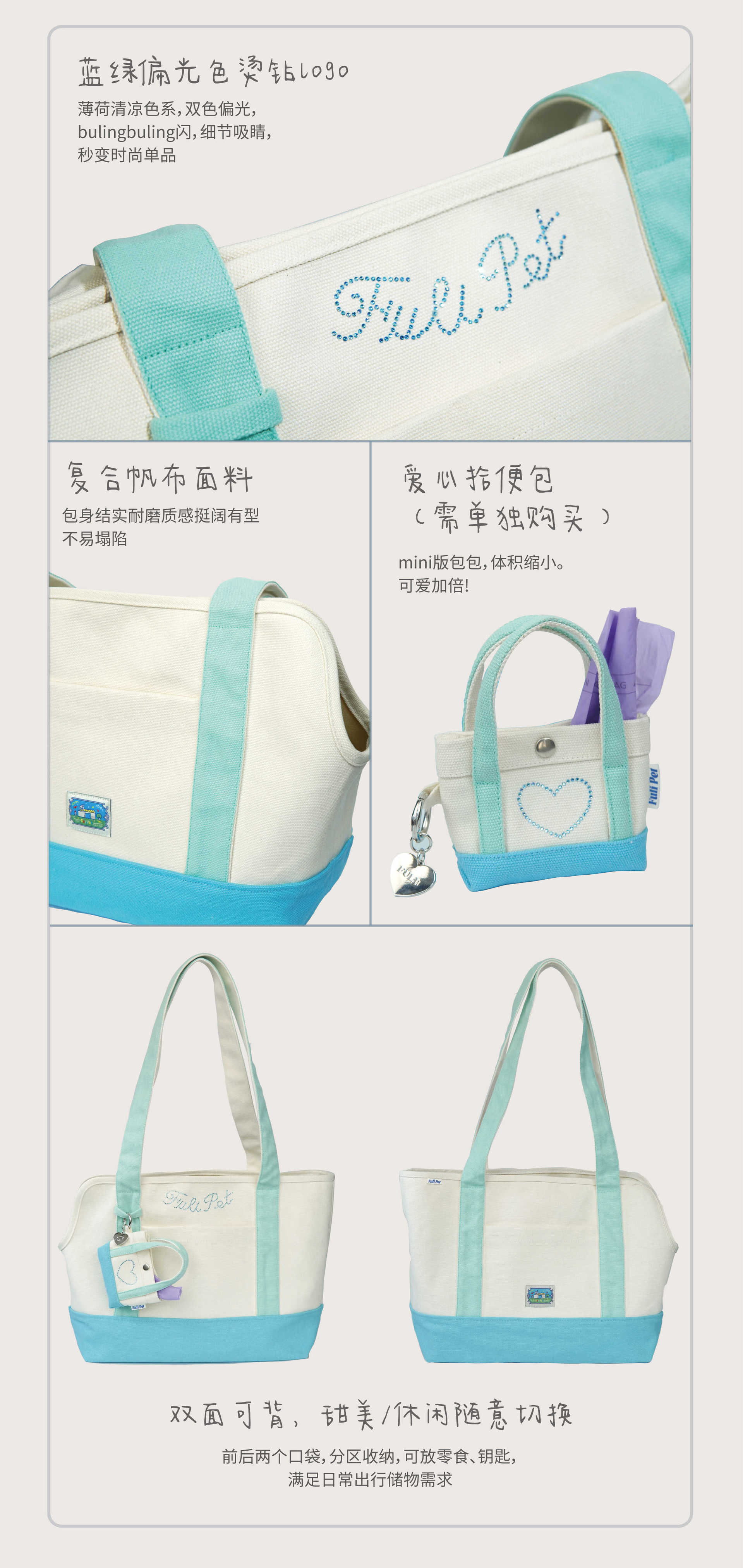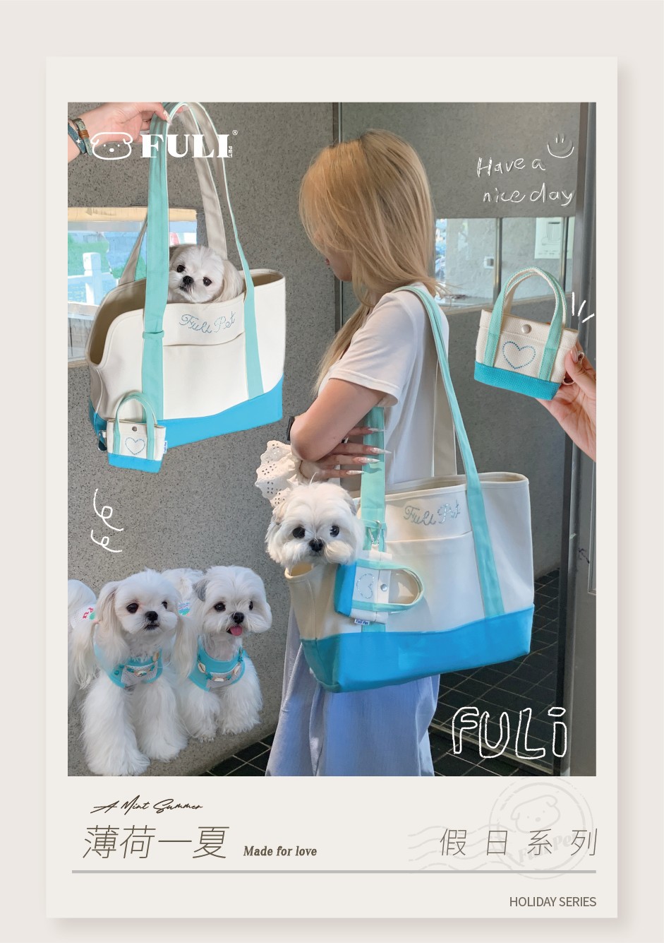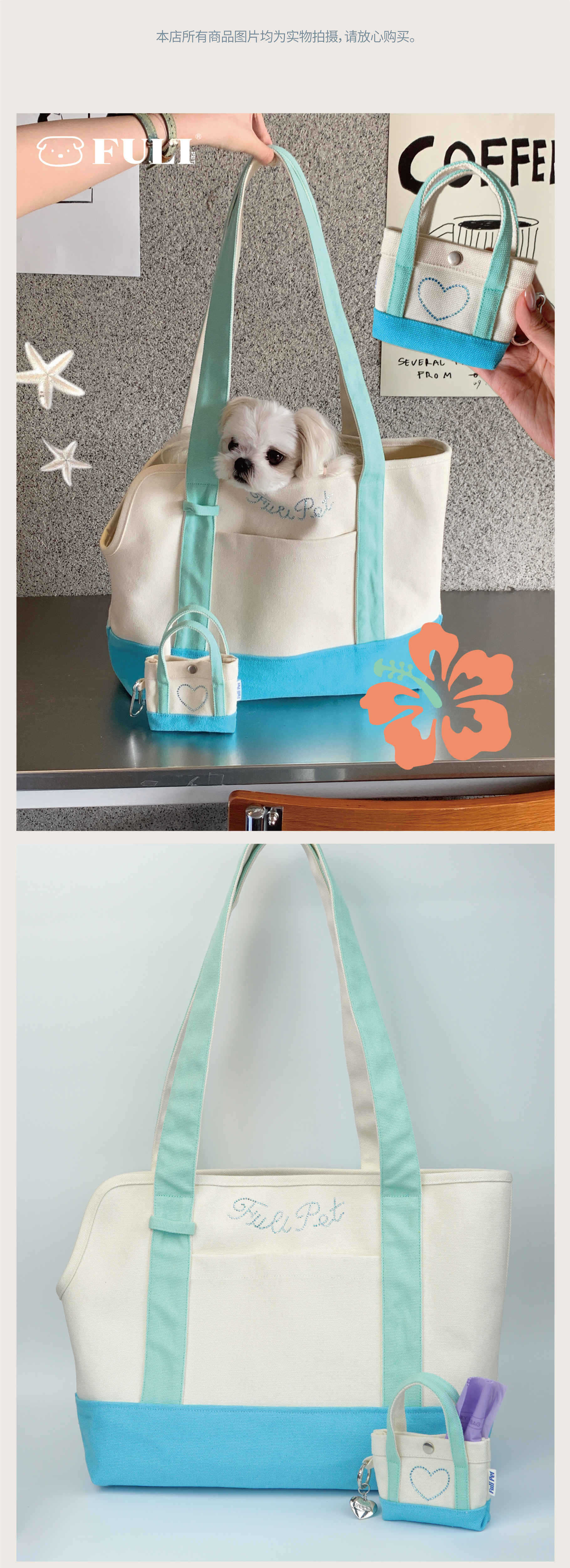 풀리펫 「민트 여름」캔버스 가방..시시견, 말티즈, 비숑, 슈나우저 애완견스토어 가기