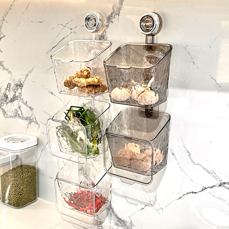 양파, 생강, 마늘 보관함, 흡입컵, 주방 보관 바구니, 벽걸이형 펀치 없는 보관함, 생강 마늘 소형 걸이 바구니