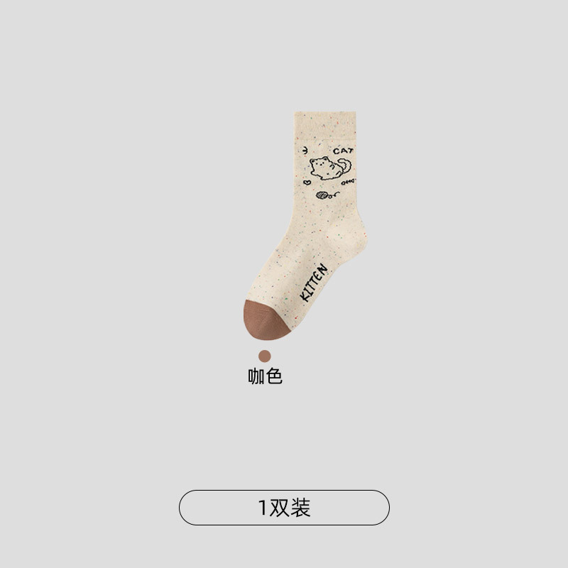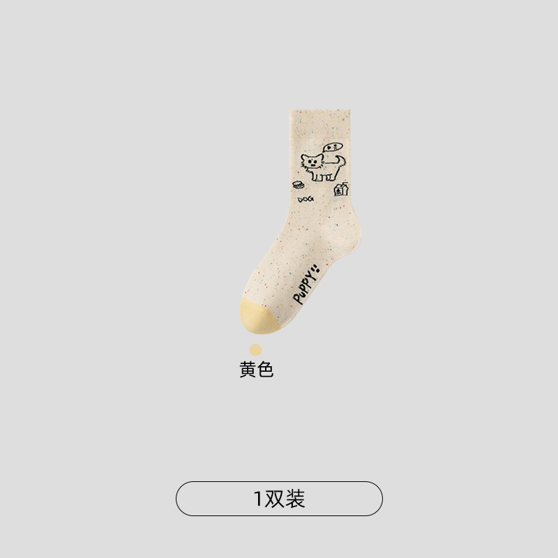CHEEMY FREE 봄 여름 만화 강아지 양말 여성용 한국 스타일 귀여운 다용도 봄, 가을 중간 튜브 양말스토어 가기