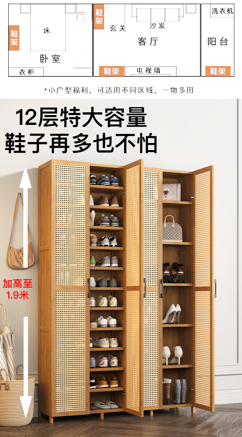 간단한 다층 방진 가정용 신발장, 출입구 수납용 신발장, 임대 주택용 경제적인 대나무 수납 선반