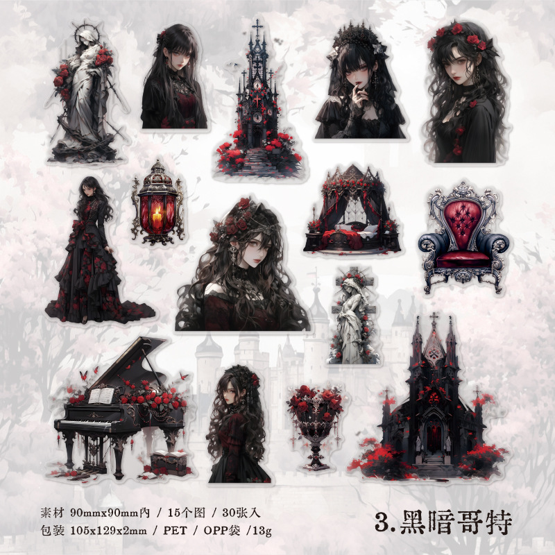Yanji Dark Academy 시리즈 애완 동물 스티커 팩 30 고딕 캐릭터 핸드북 장식 재료 6 스타일