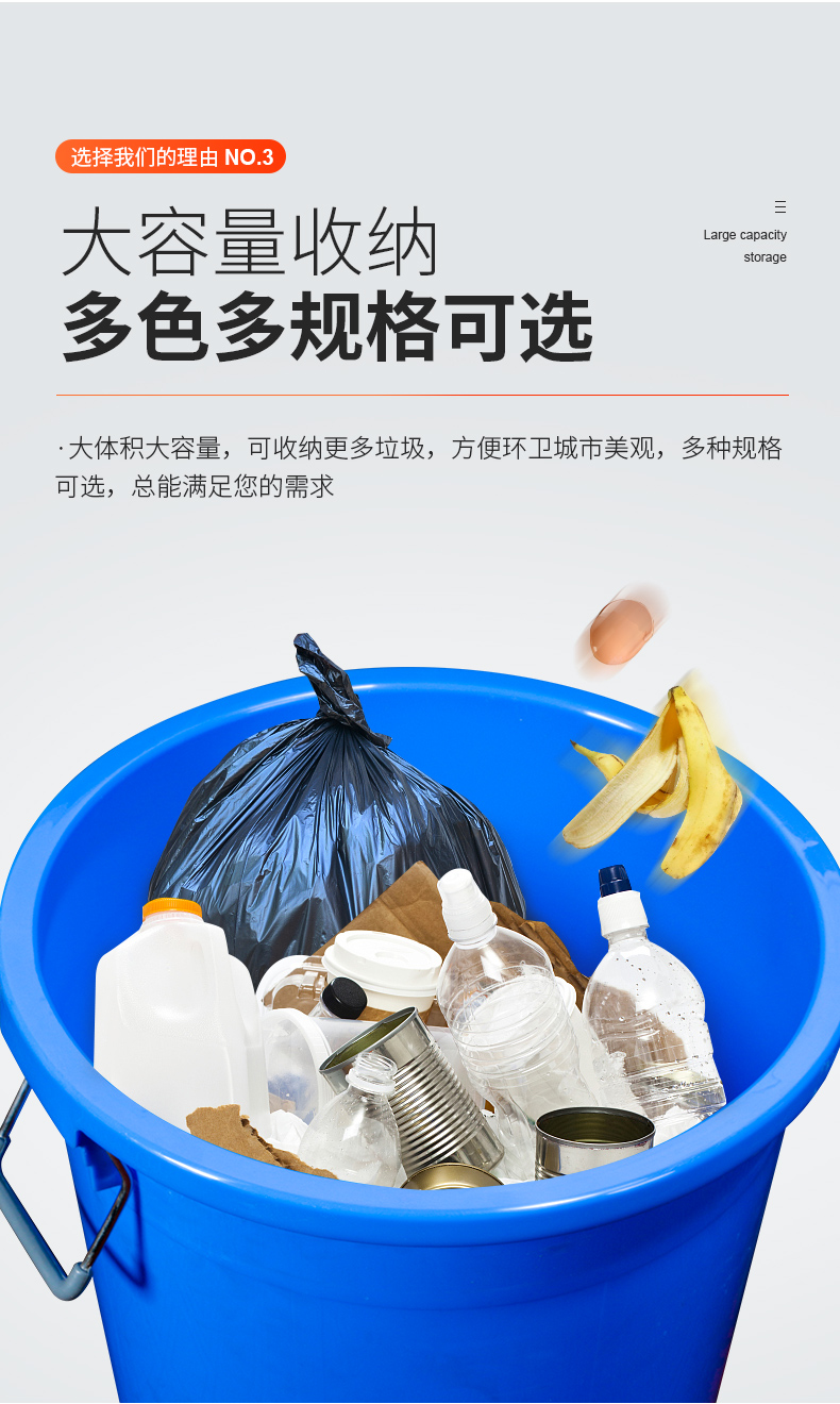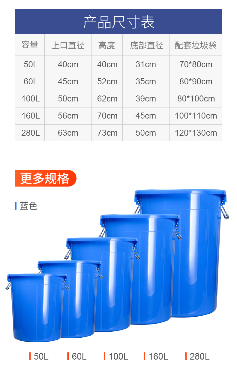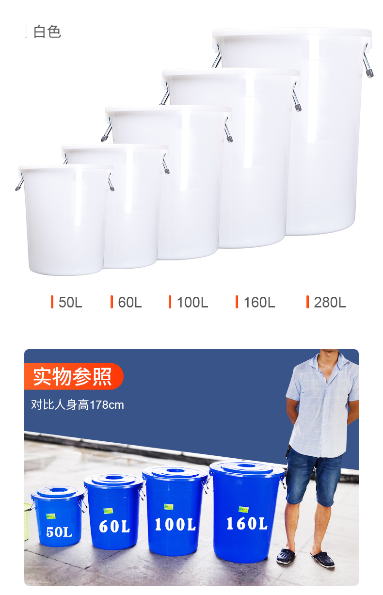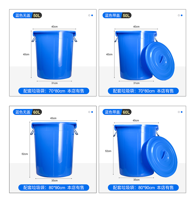 대형 원형 쓰레기통 야외 위생 산업 대용량 가정용 상업용 주방 뚜껑이 있는 두꺼운 플라스틱 보관함스토어 가기
