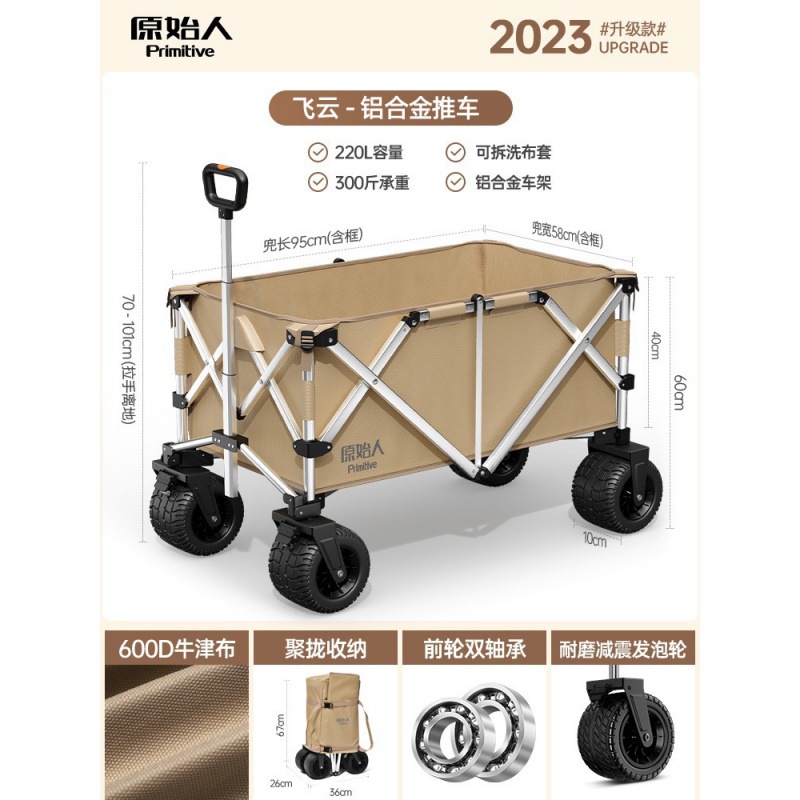 원시 캠핑 카트 캠핑카 알루미늄 합금 푸시 야외 접이식 캠핑 피크닉 트레일러 핸드 카트