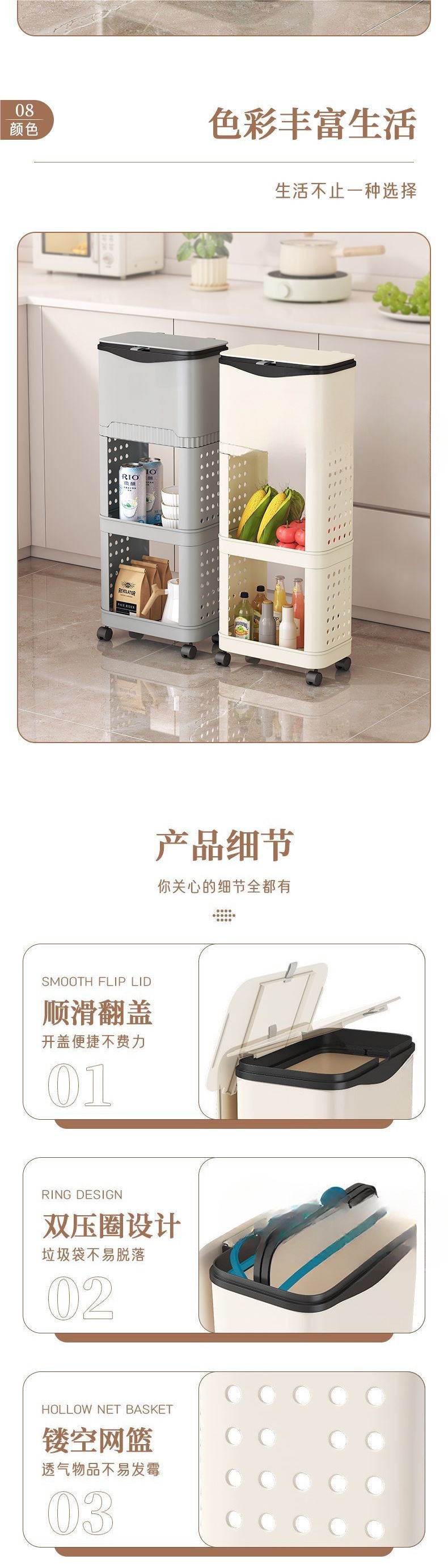 주방 쓰레기통 가정용 대용량 이동식 이중층 수납 뚜껑 포함 일본식 다층 수납 선반 기타 없음