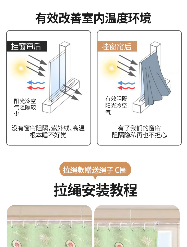 구멍이 없는 걸이형 구멍이 뚫린 암막 커튼 기숙사 침실 베드벤치 창 주방 투광 불투명 거즈 커튼 완제품스토어 가기