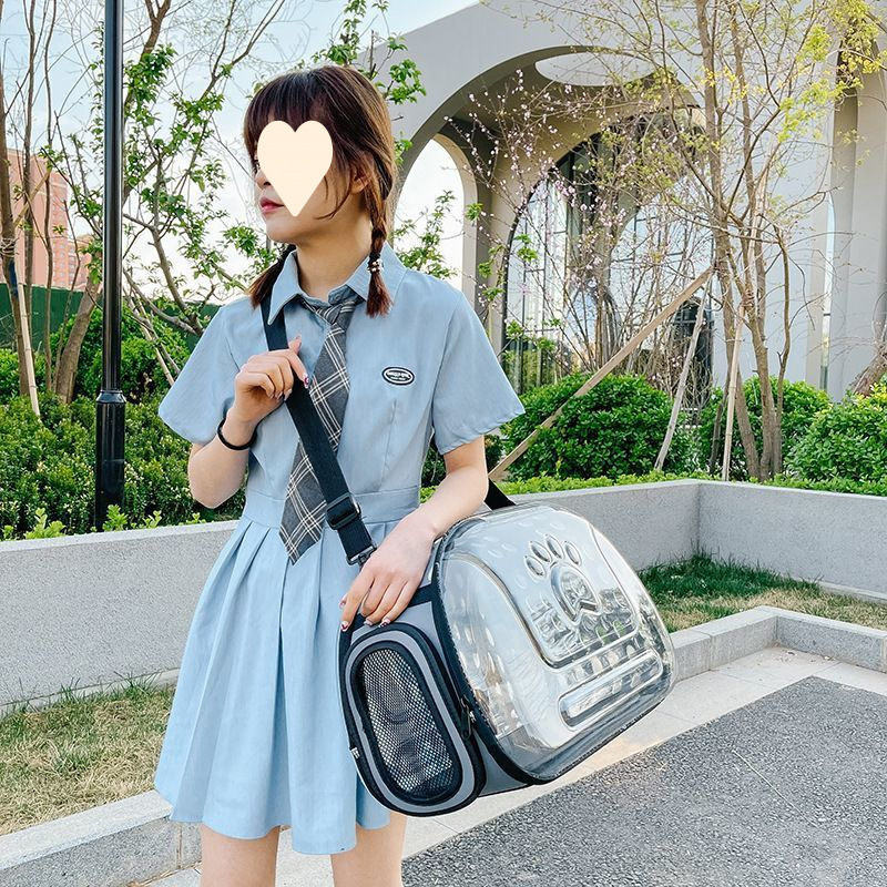 투명한 애완동물 외출가방, 휴대용 경량 고양이 가방, 대용량 휴대용 크로스백, 고양이와 강아지를 위한 통기성 공간 가방
