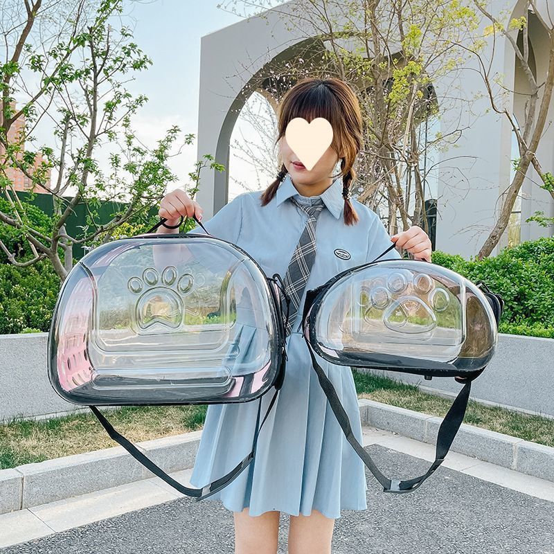 투명한 애완동물 외출가방, 휴대용 경량 고양이 가방, 대용량 휴대용 크로스백, 고양이와 강아지를 위한 통기성 공간 가방스토어 가기