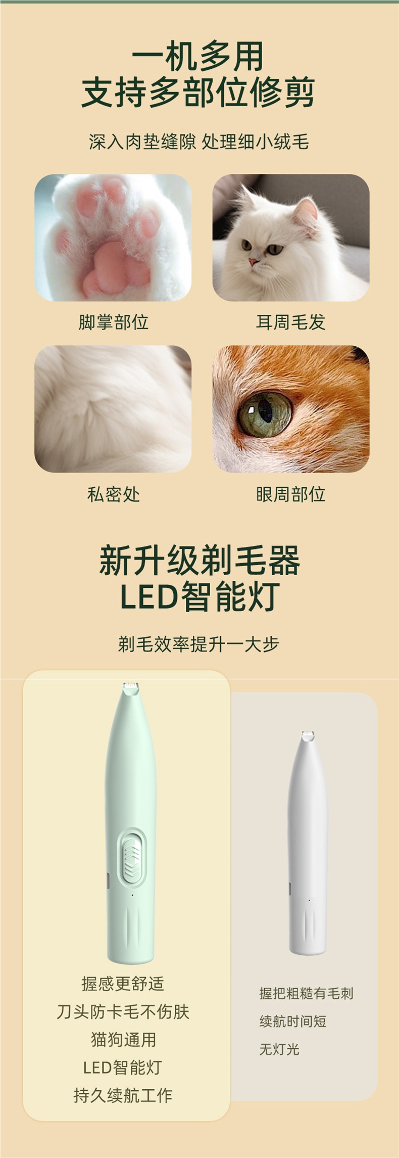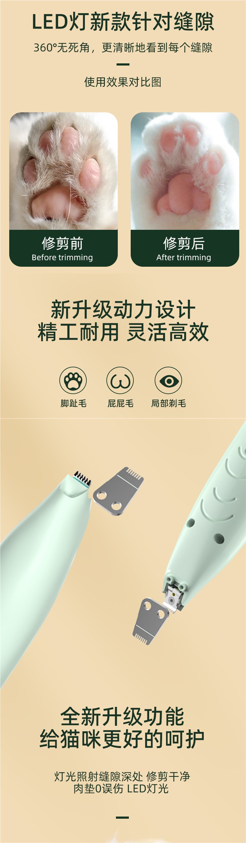 조명이 달린 애완동물 면도기, 개용 전기 이발기, 고양이 발 면도기, 전기 이발기, 이발기