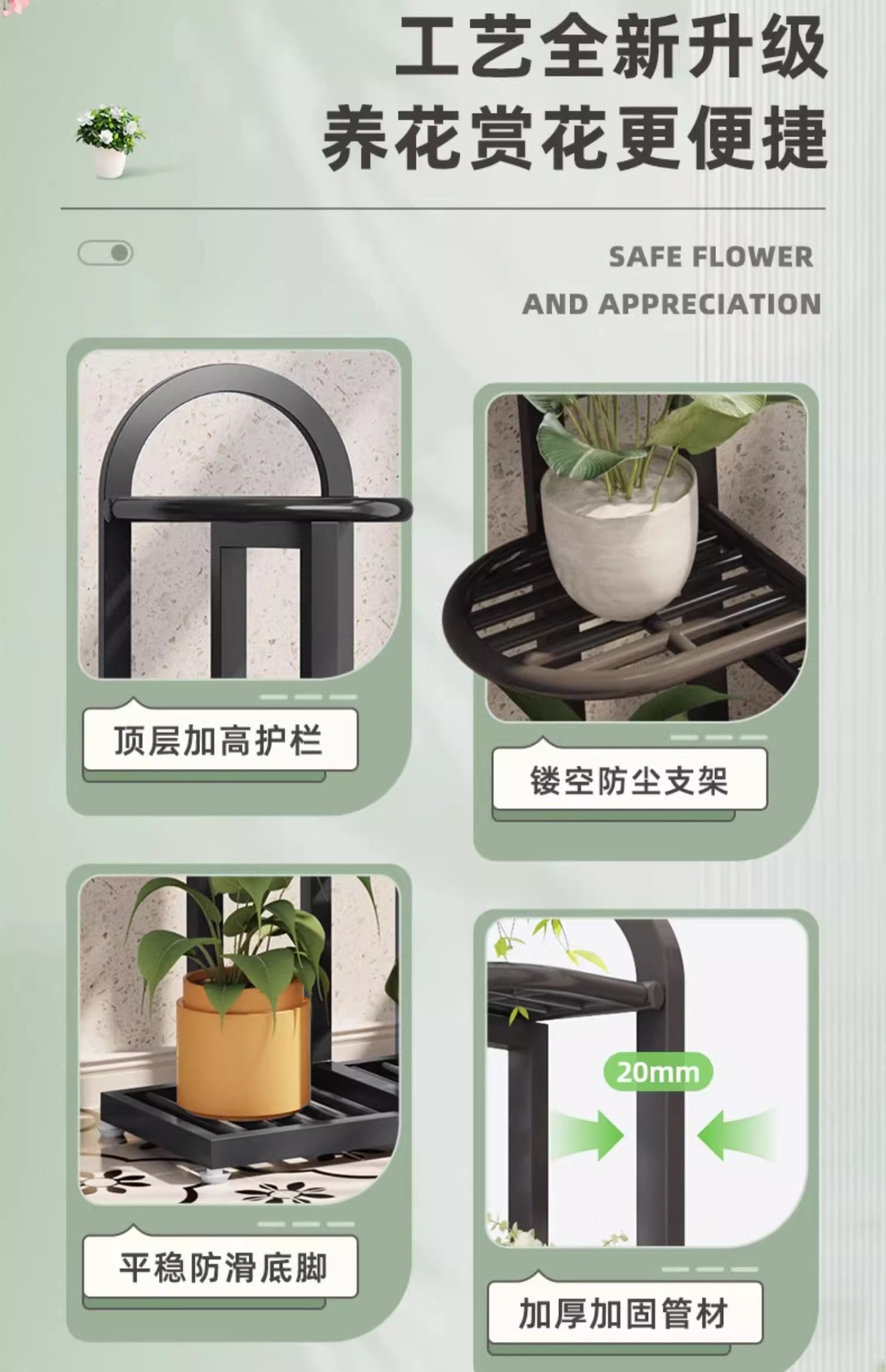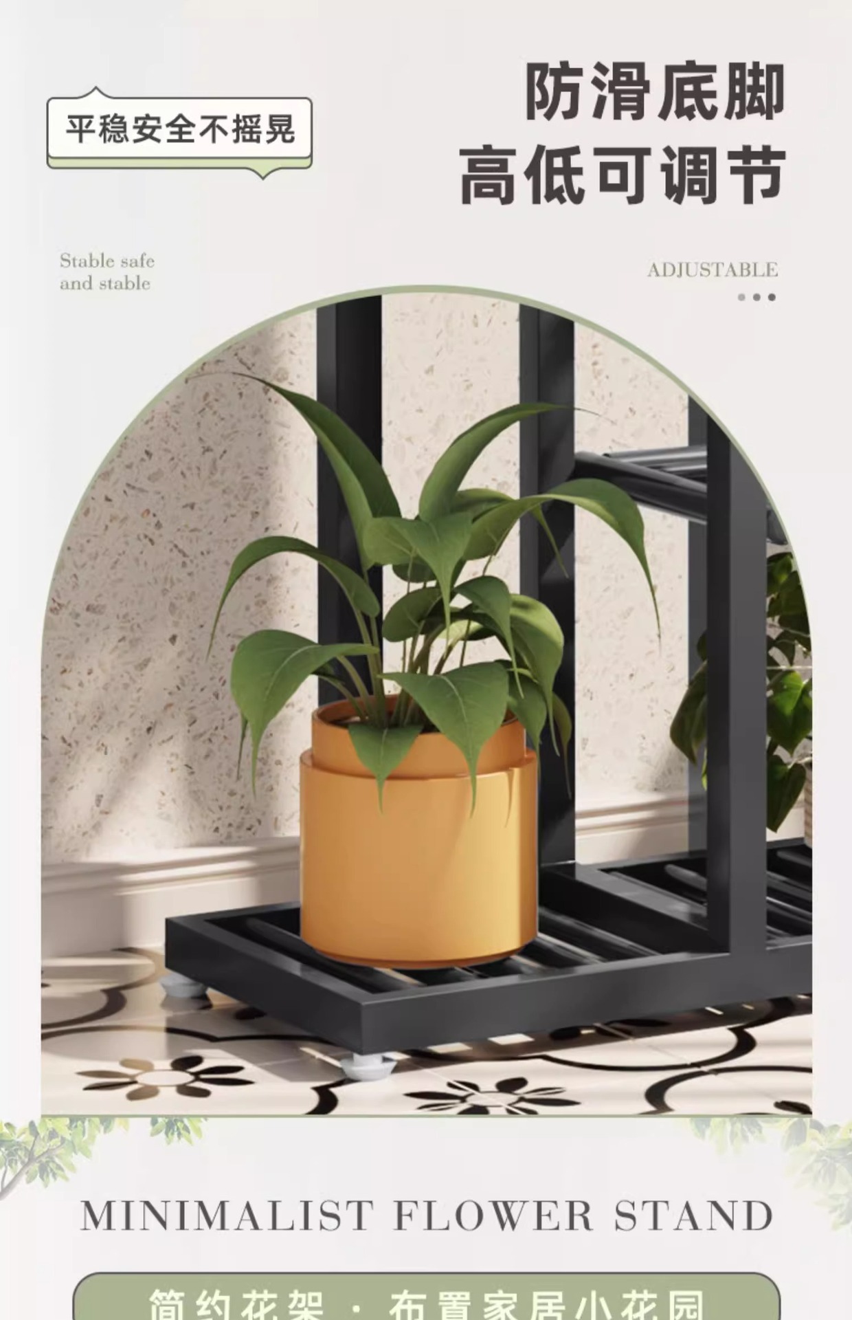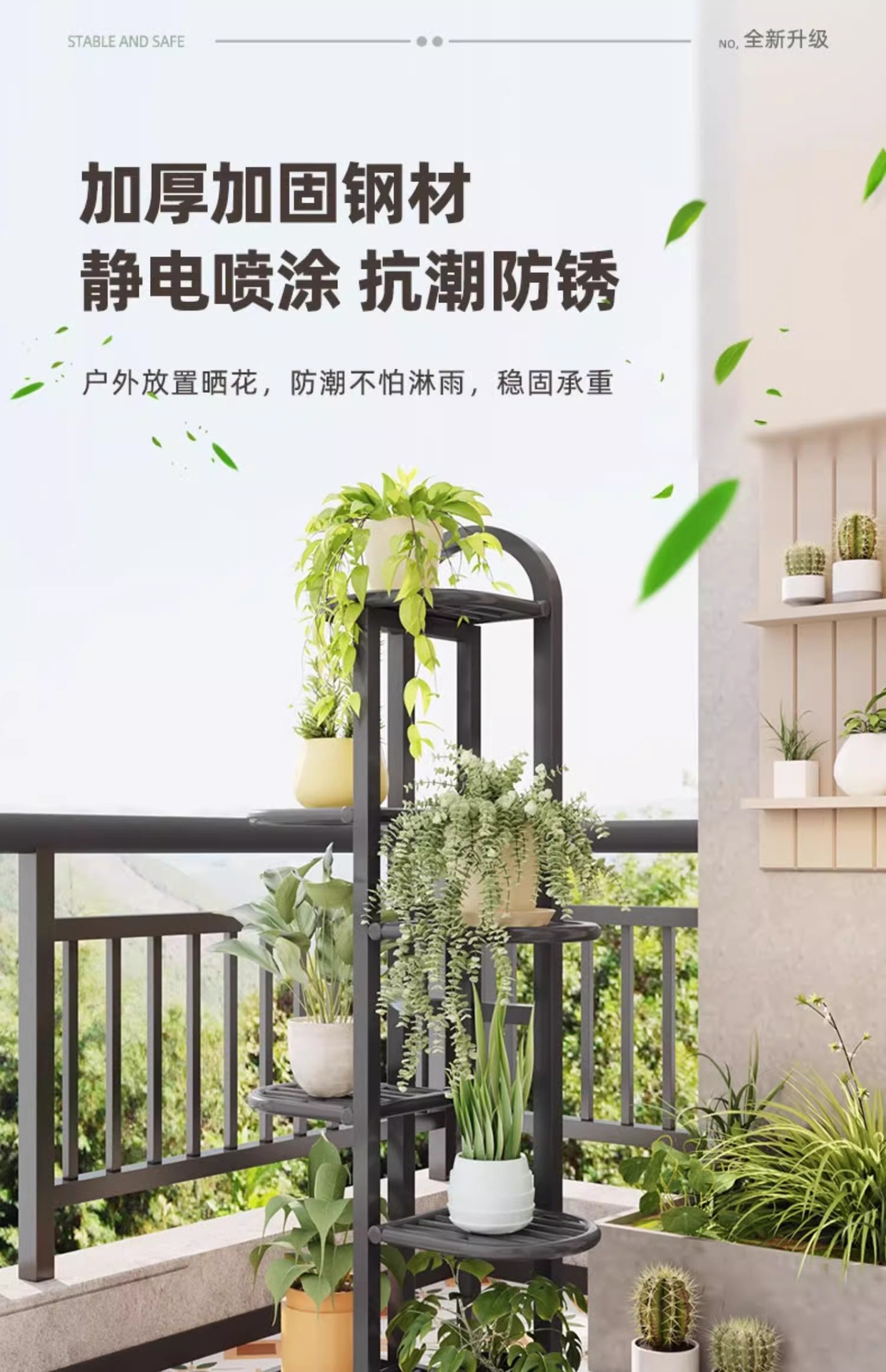 거실용 수납 선반, 바닥부터 천장까지 이어지는 다층 철제 꽃 스탠드, 실내 청록색 화분, 발코니 화분, 식물 진열대