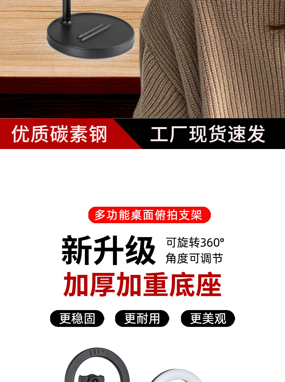 • 디스크 베이스 - 금속 크로스바 - 휴대폰 클립 - 팬/틸트 - 필라이트 - 브래킷 호스