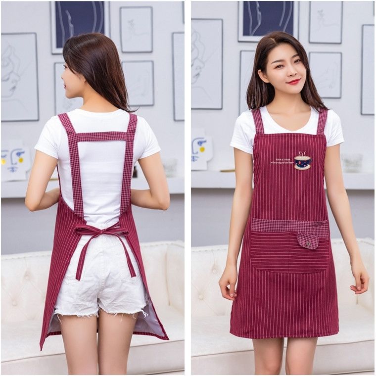 주방용 순면 방수 앞치마 스트랩, 가정용 주방, 여성 패션, 여성 작업 웨이터, 매니큐어, 밀크티 가게 인쇄스토어 가기