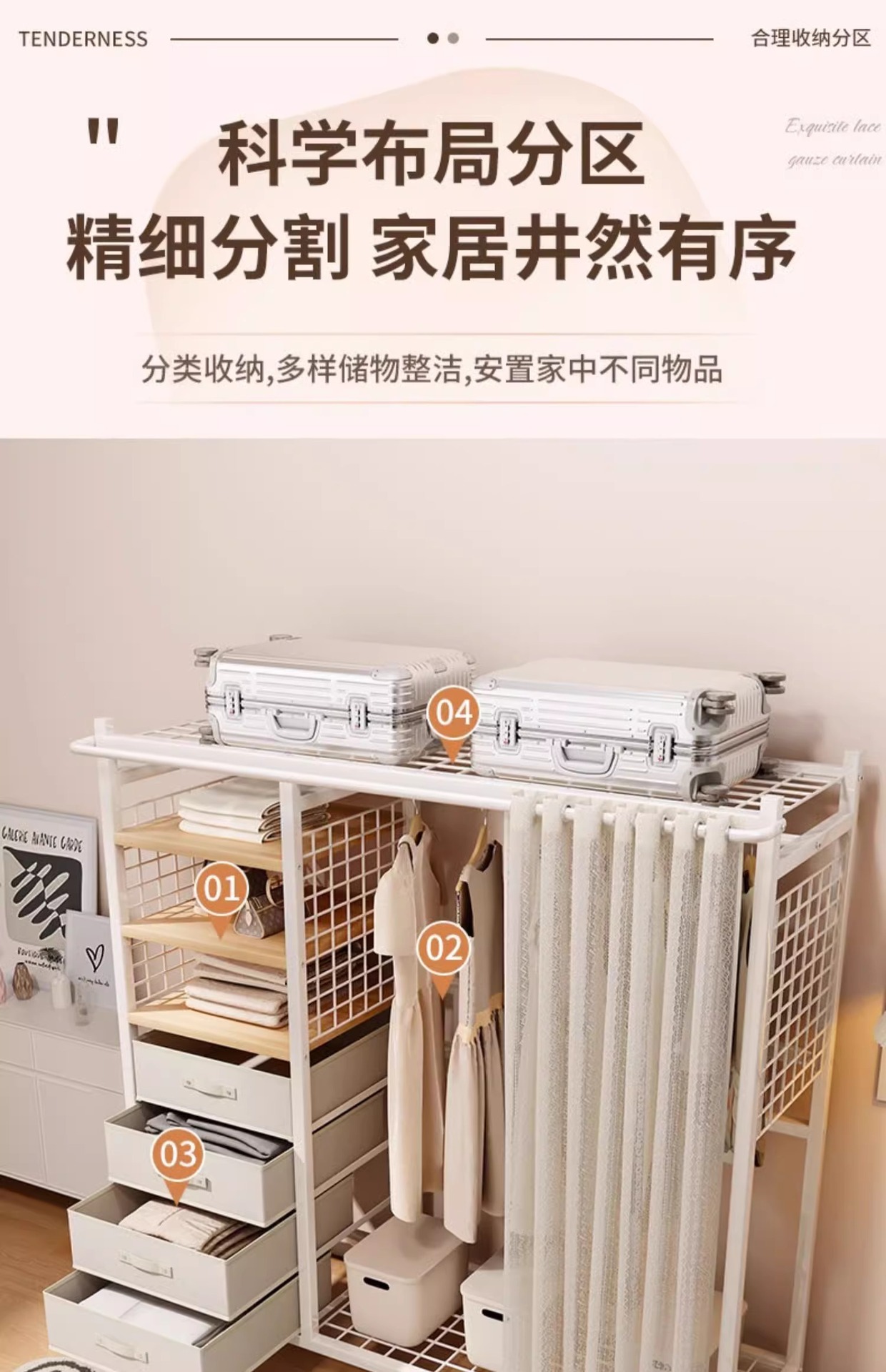 간단한 옷장 철제 천 옷장 침실 계층형 수납 가구 방진 옷장 임대실 개방형 옷걸이