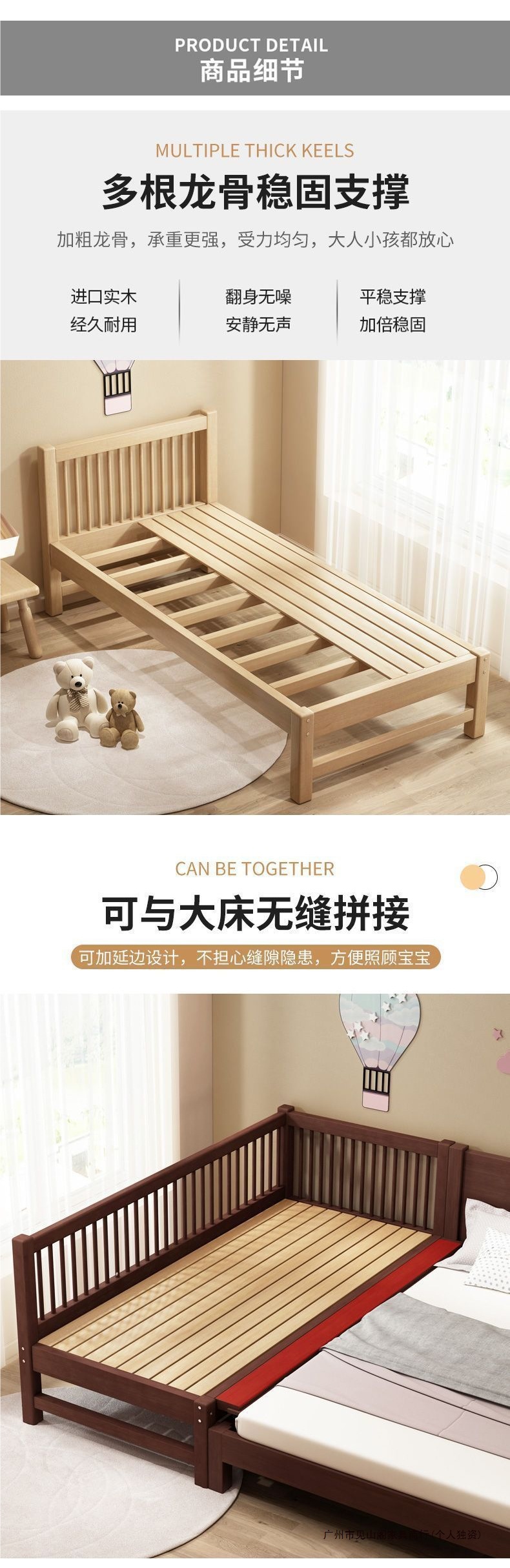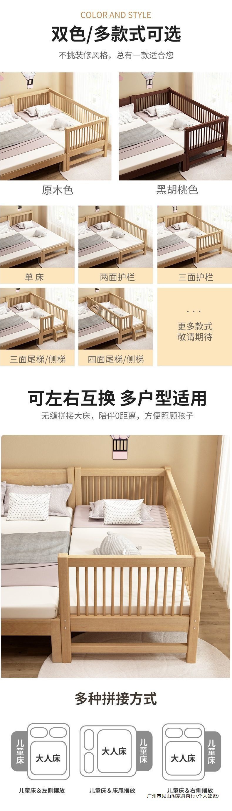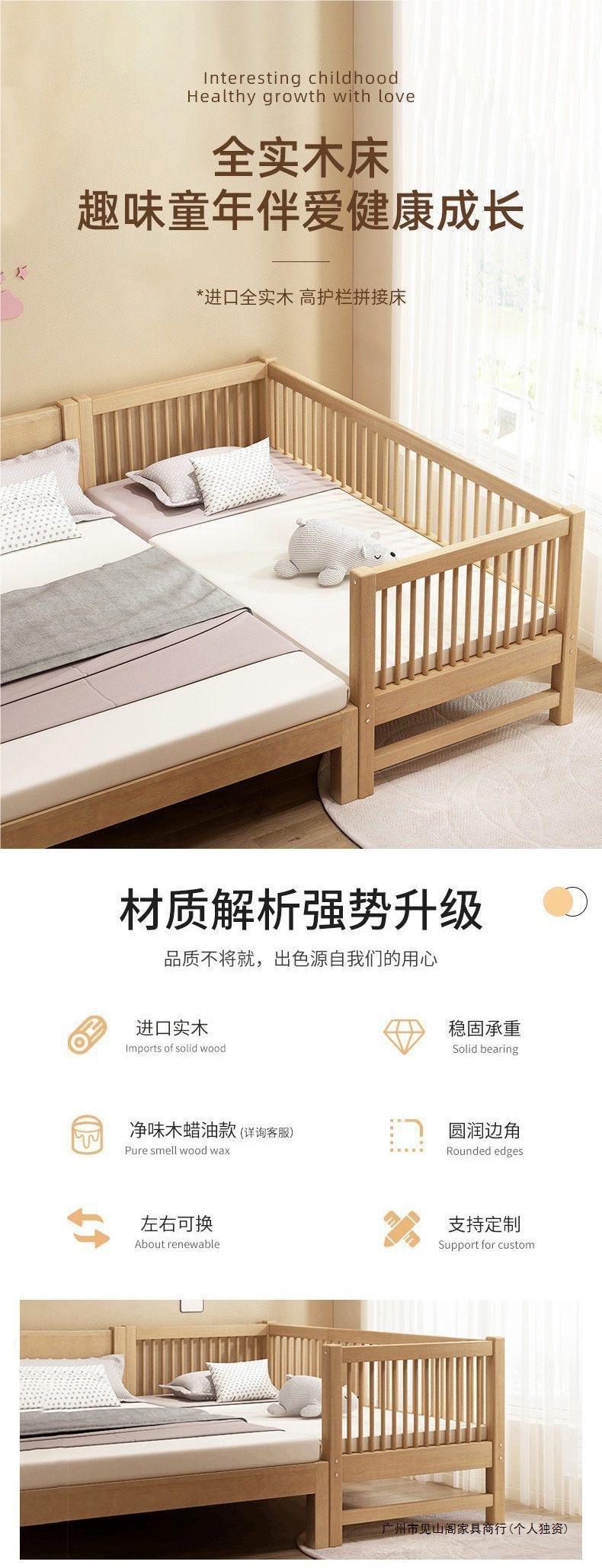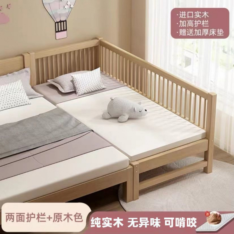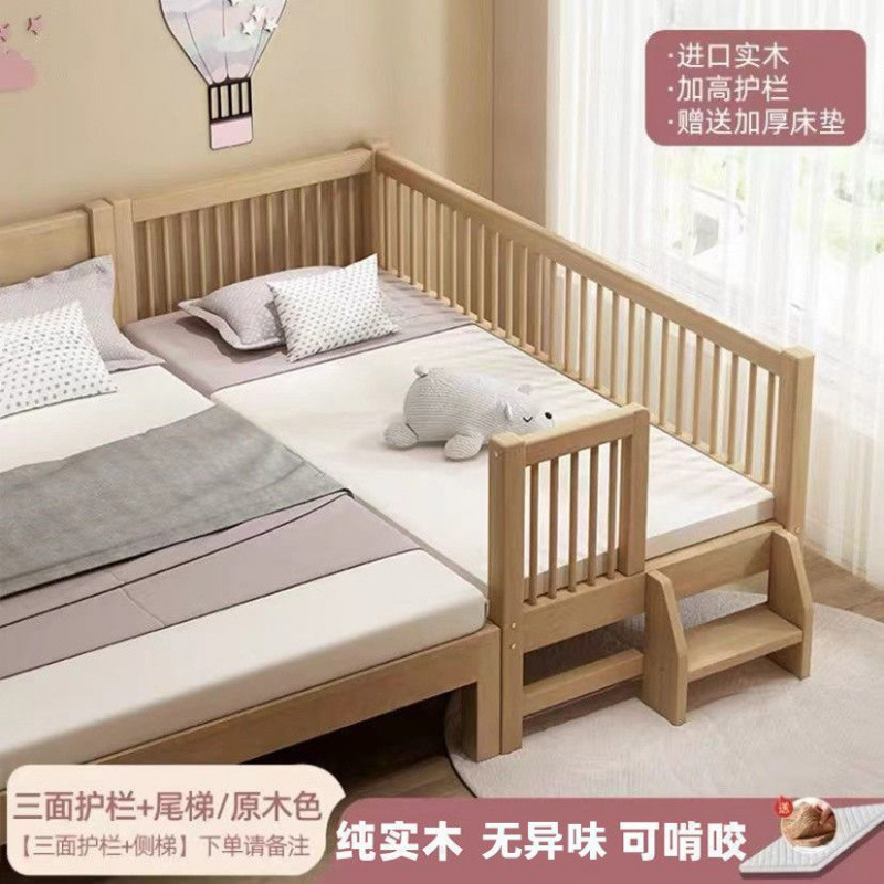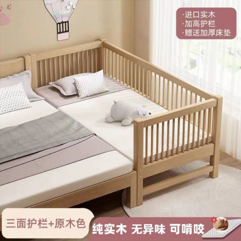 너도밤나무 어린이 접합 침대 연장 및 넓은 안전 가드 베이비 소년 소녀 침대 접합 대형 사이드 침대 순수 단단한 나무스토어 가기