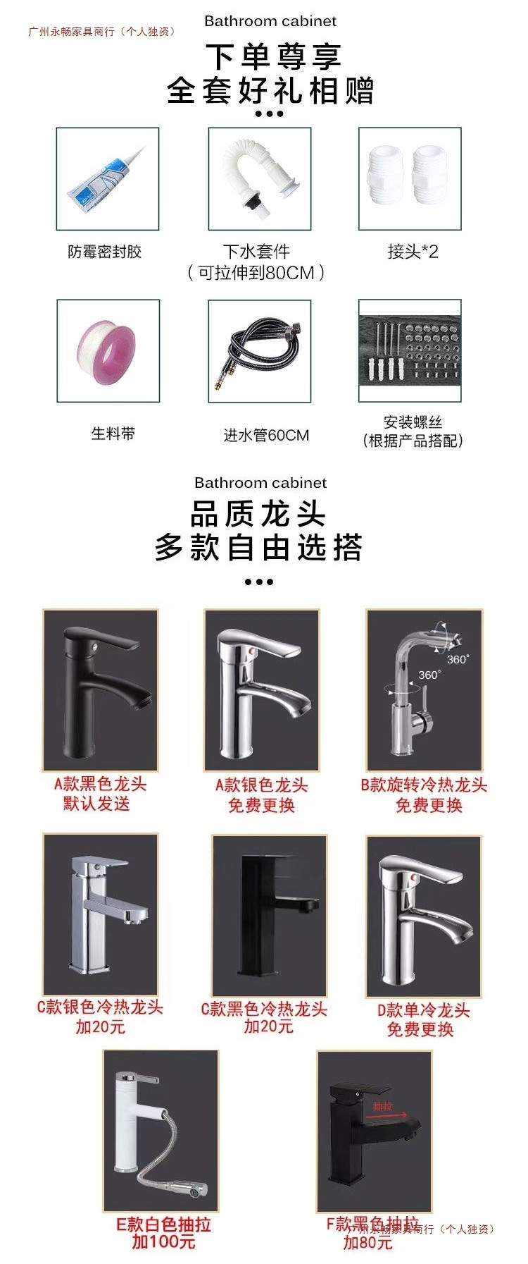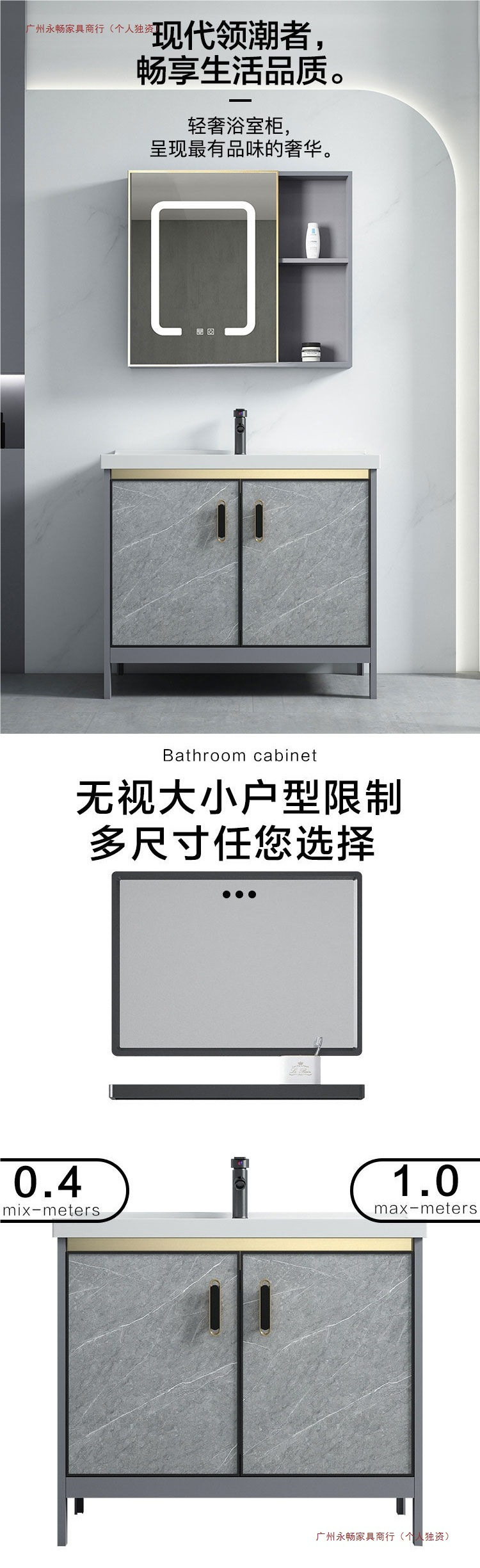 • F1- 1m 도어 플로어 캐비닛 + 거울 캐비닛 전체 세트
