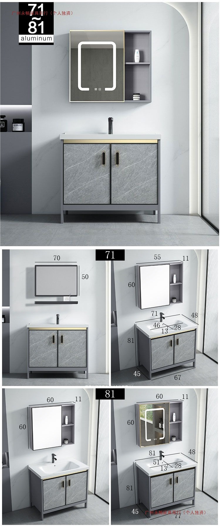• 그레이-51 도어 플로어 캐비닛 + 거울 캐비닛 전체 세트