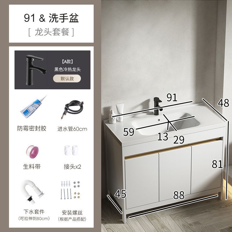 • 화이트-91 도어 플로어 캐비닛 + 거울 캐비닛 전체 세트
