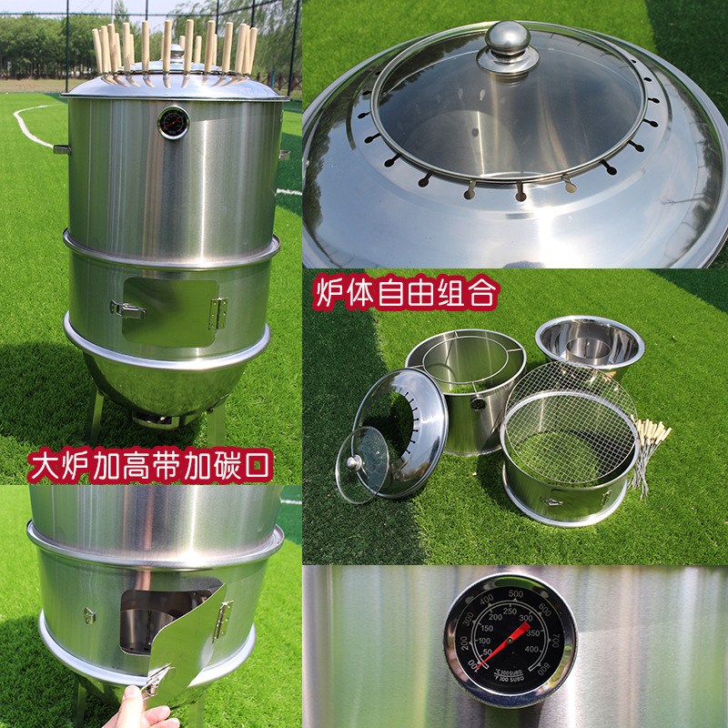무연 바베큐 스탠드 오븐 가정용 스테인레스 스틸 오븐 가정용 야외 숯불 그릴 다기능 꼬치 구이 치킨 접이식