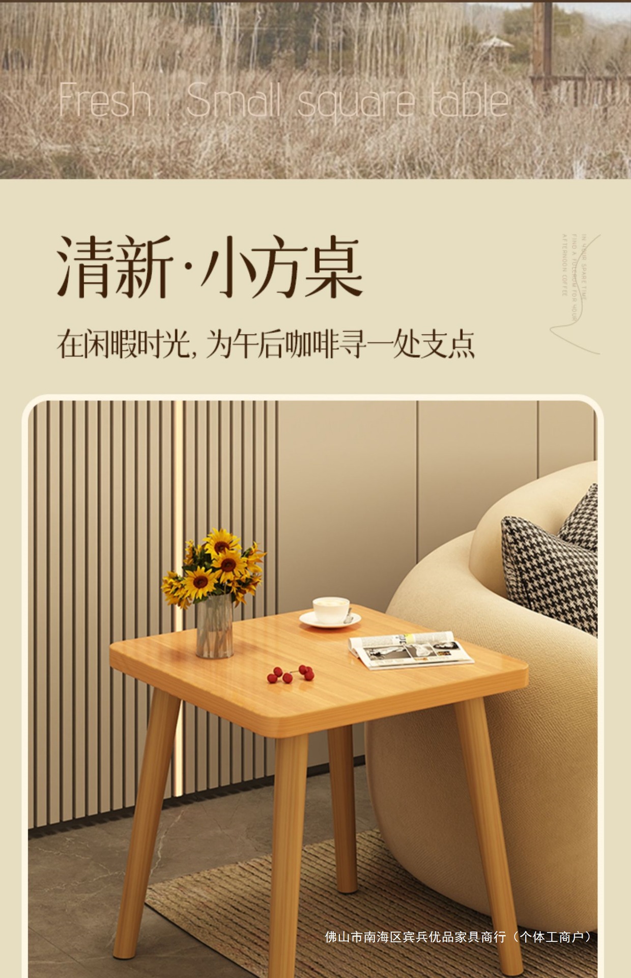 소형 사각 테이블, 커피 테이블, 임대 주택용 테이블, 소형 가정용 간단한 사각형 원목 다리, 발코니 티 테이블, 소파 사이드 테이블