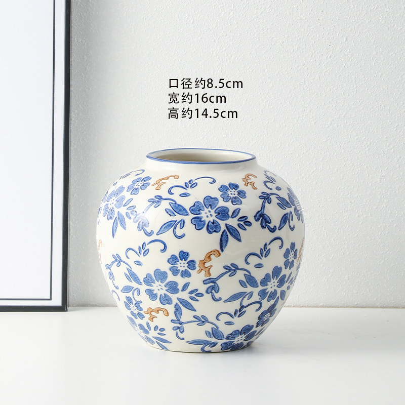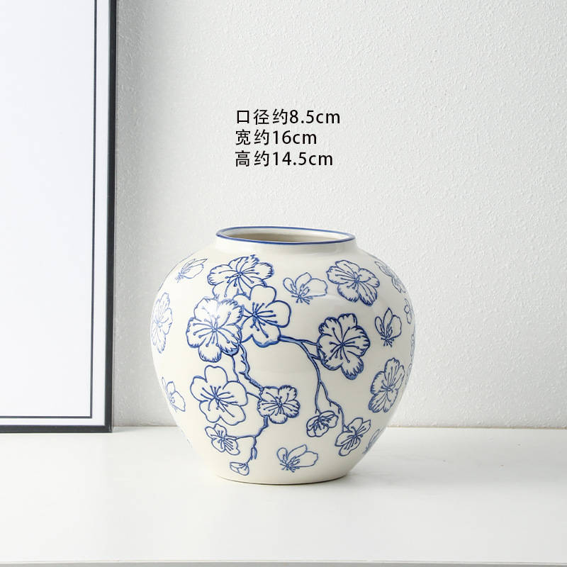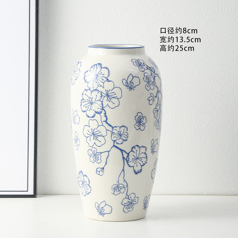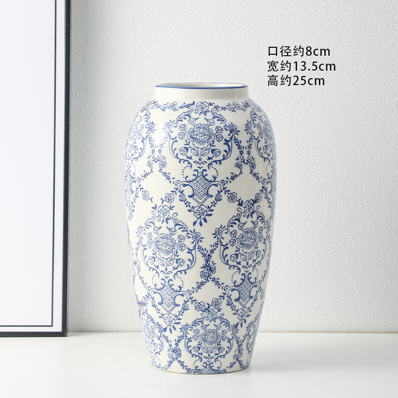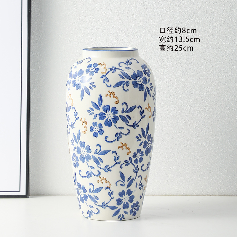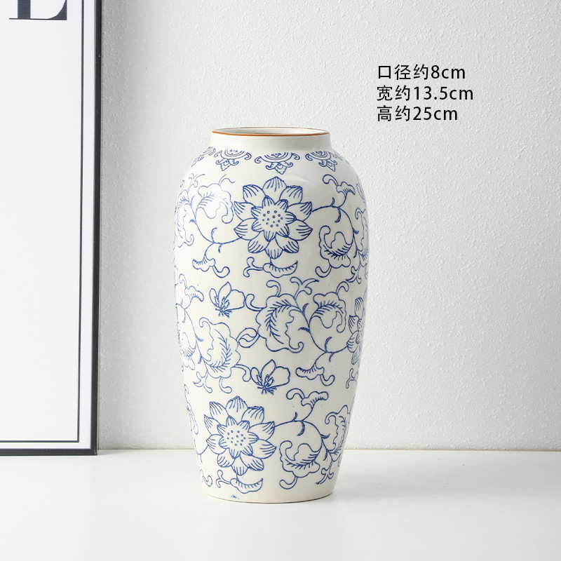 중국 스타일 새로운 중국 스타일 복고풍 파란색과 흰색 도자기 꽃병 빛 럭셔리 세라믹 장식품 거실 입구 꽃꽂이 홈 인테리어스토어 가기