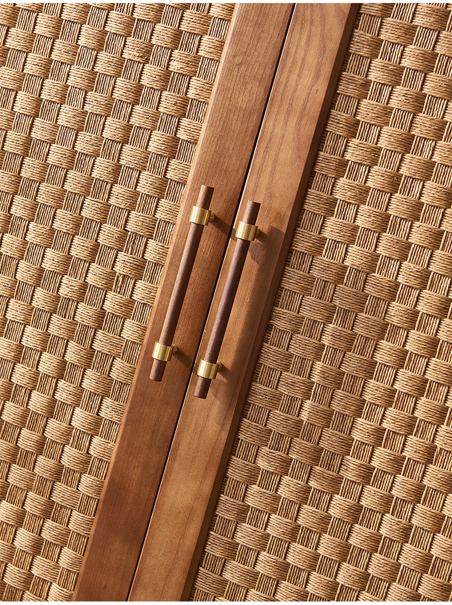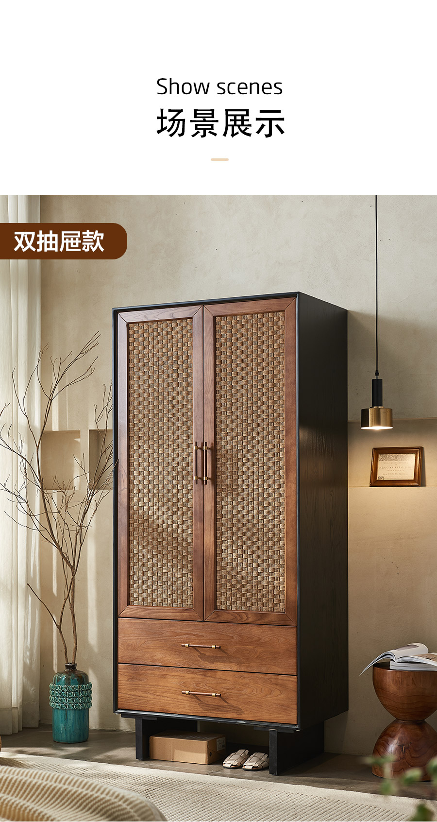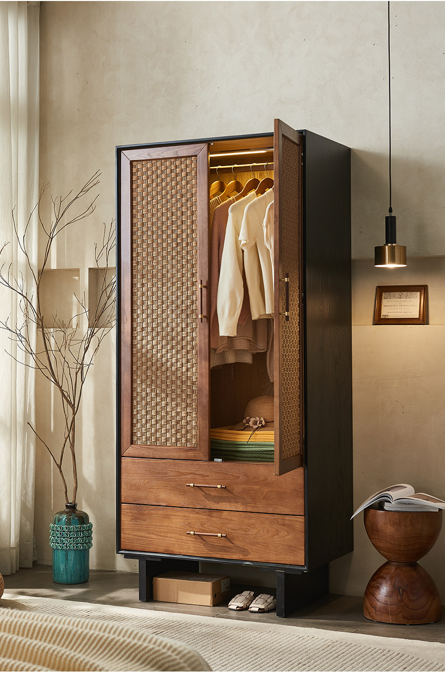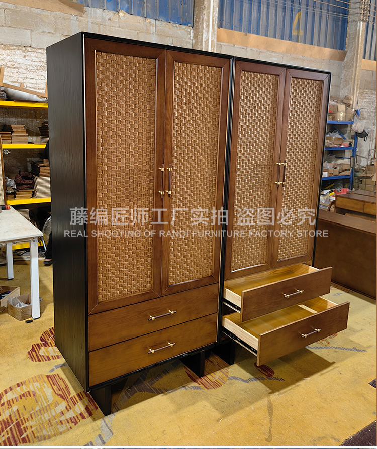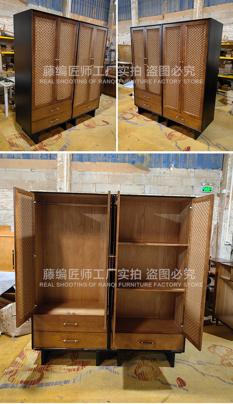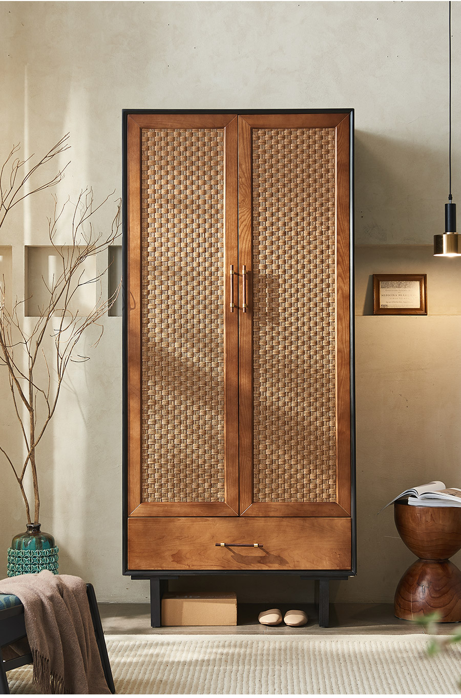 중세 스타일 단단한 나무 등나무 옷장 수납 캐비닛 와비사비 스타일 복고풍 캐비닛 B&B 침실 양문 옷장