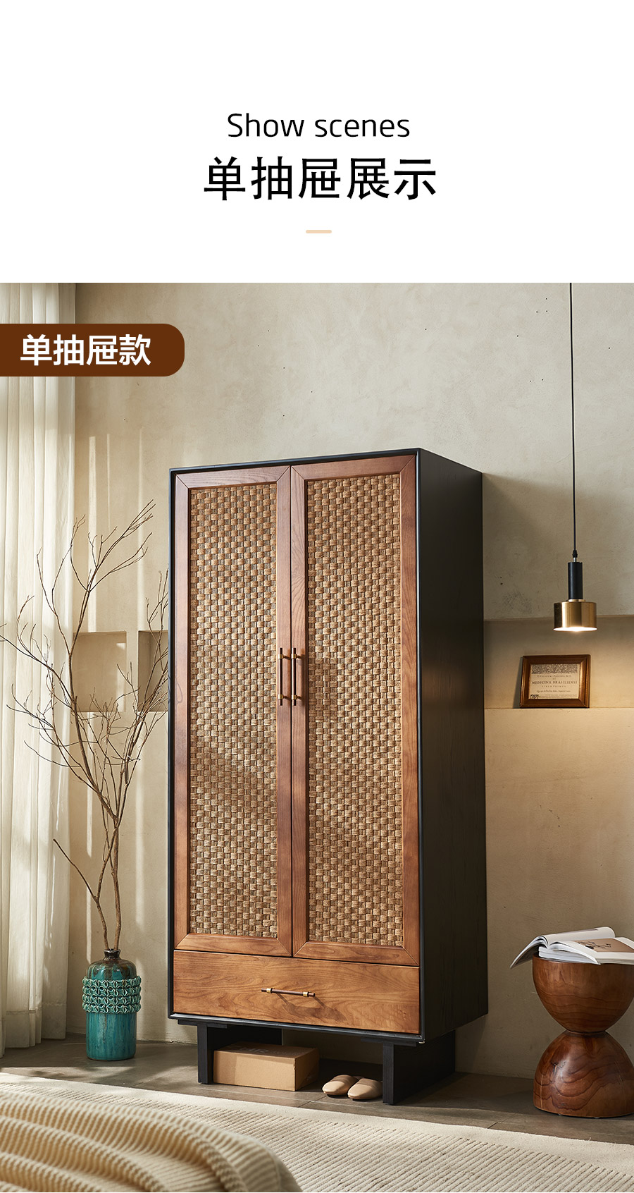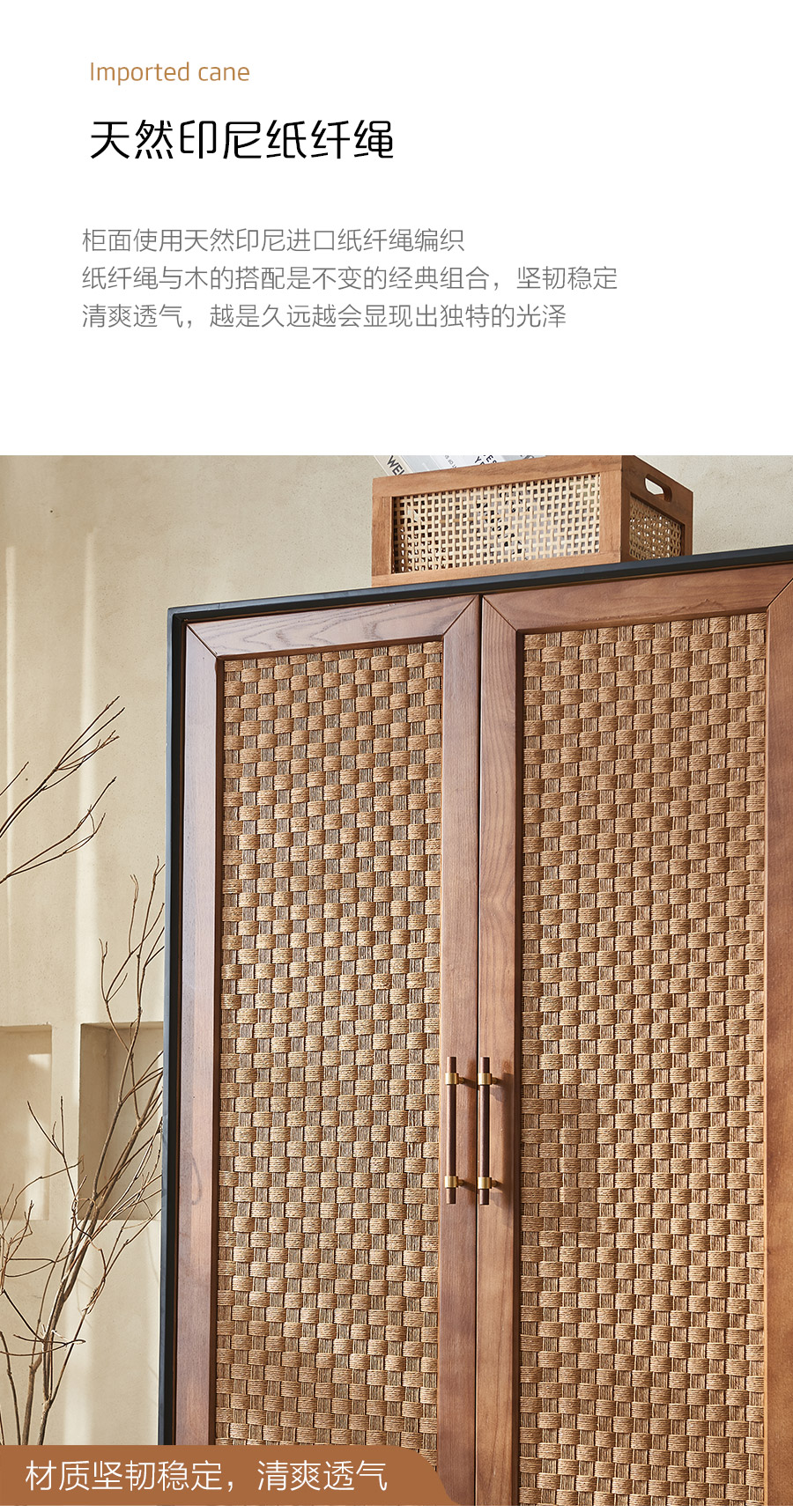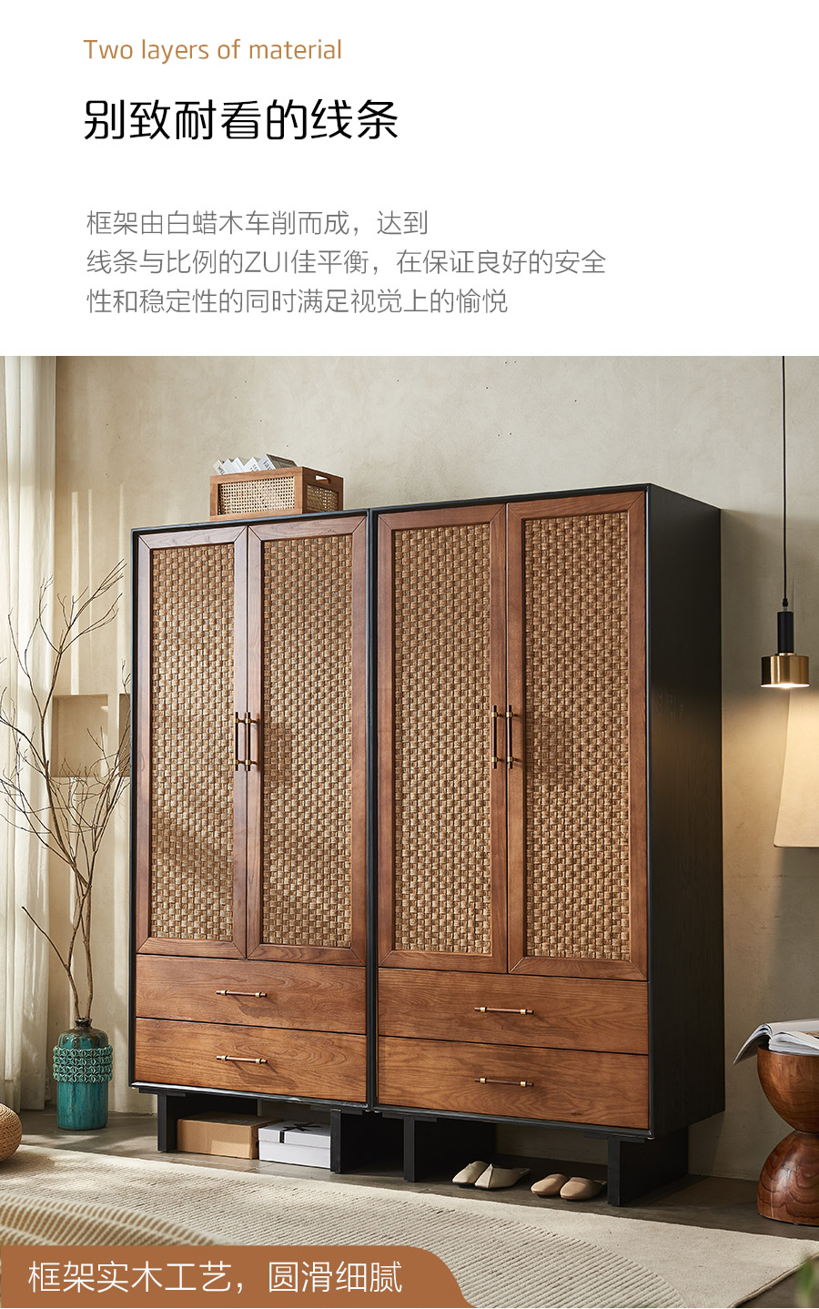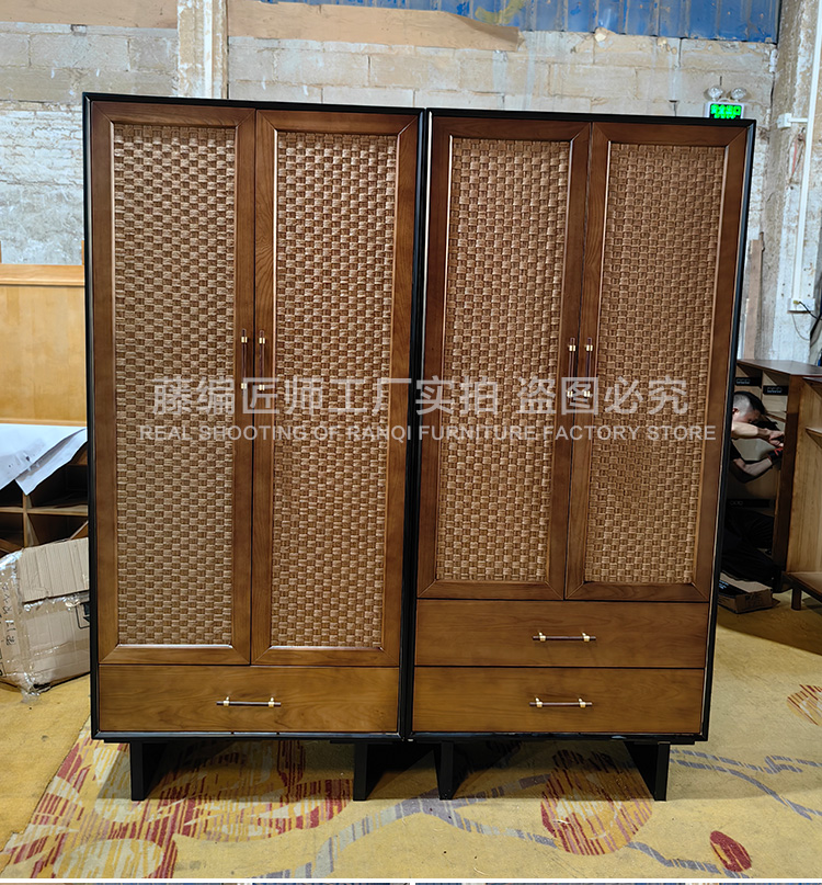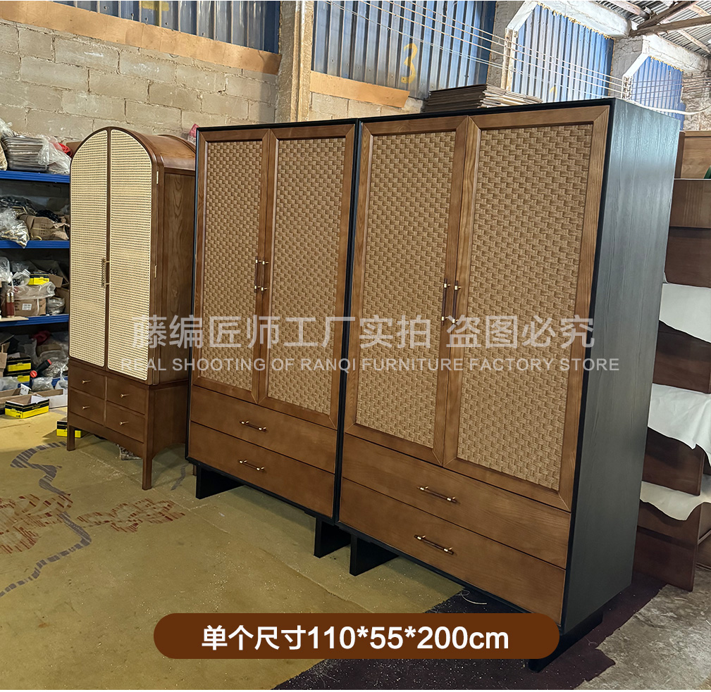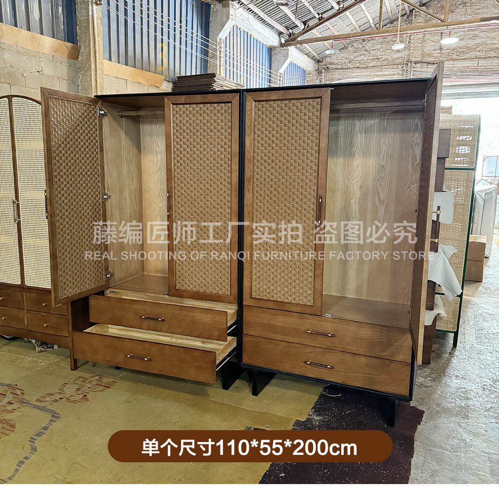 중세 스타일 단단한 나무 등나무 옷장 수납 캐비닛 와비사비 스타일 복고풍 캐비닛 B&B 침실 양문 옷장