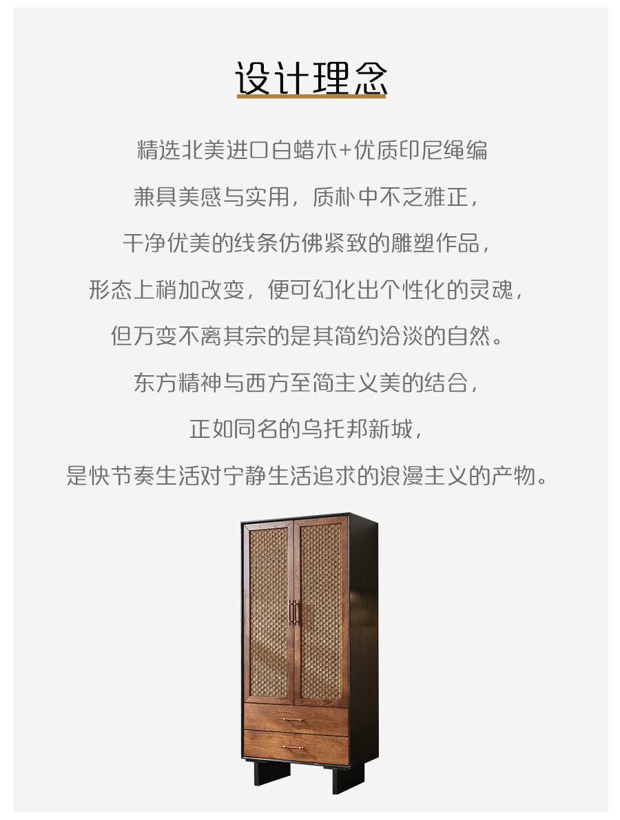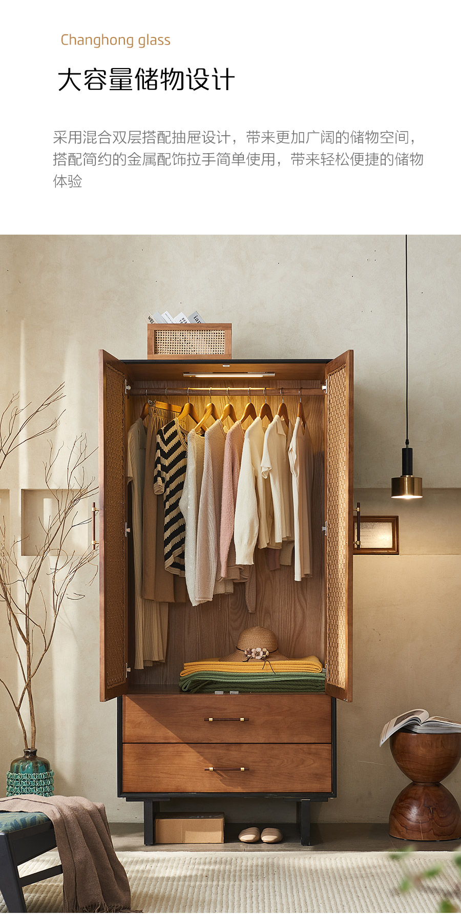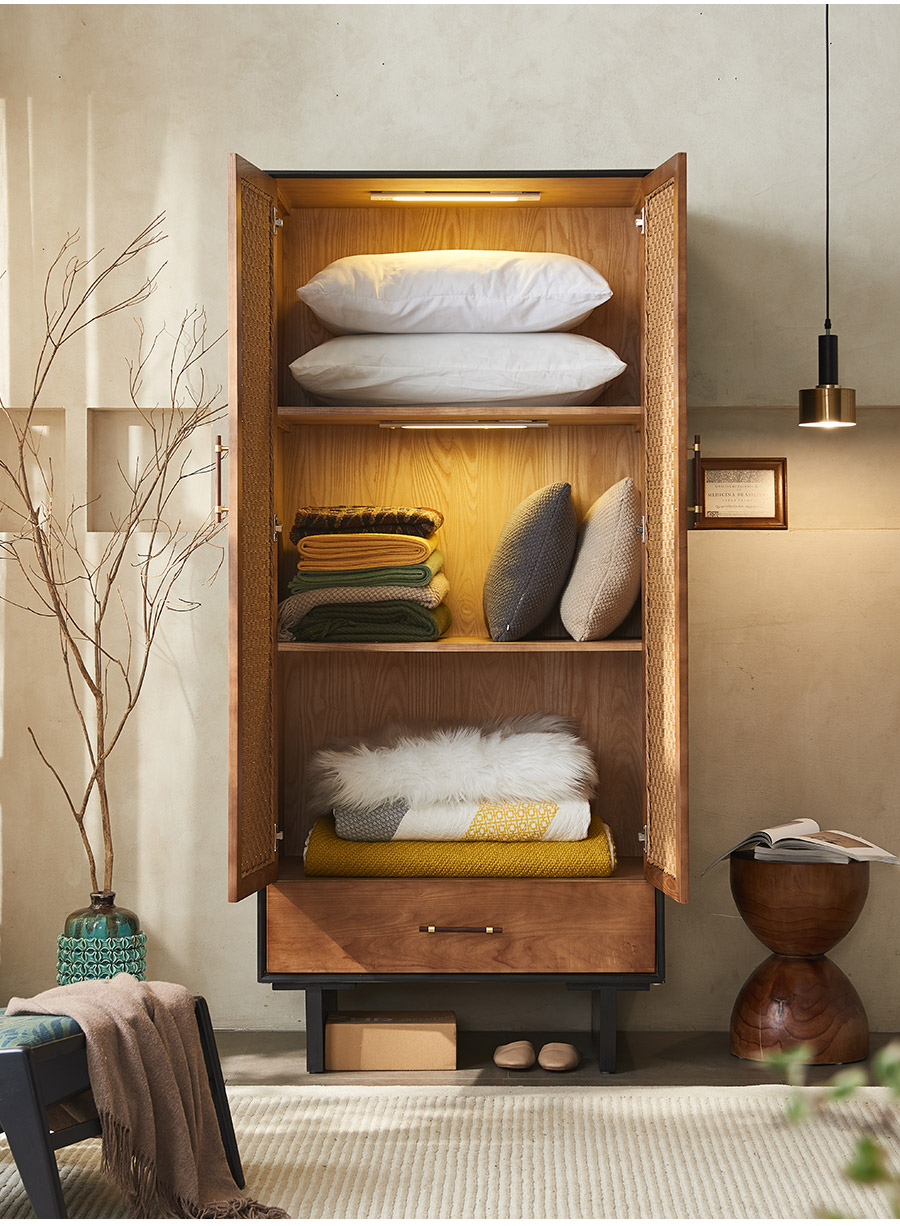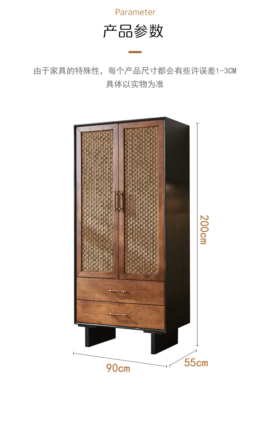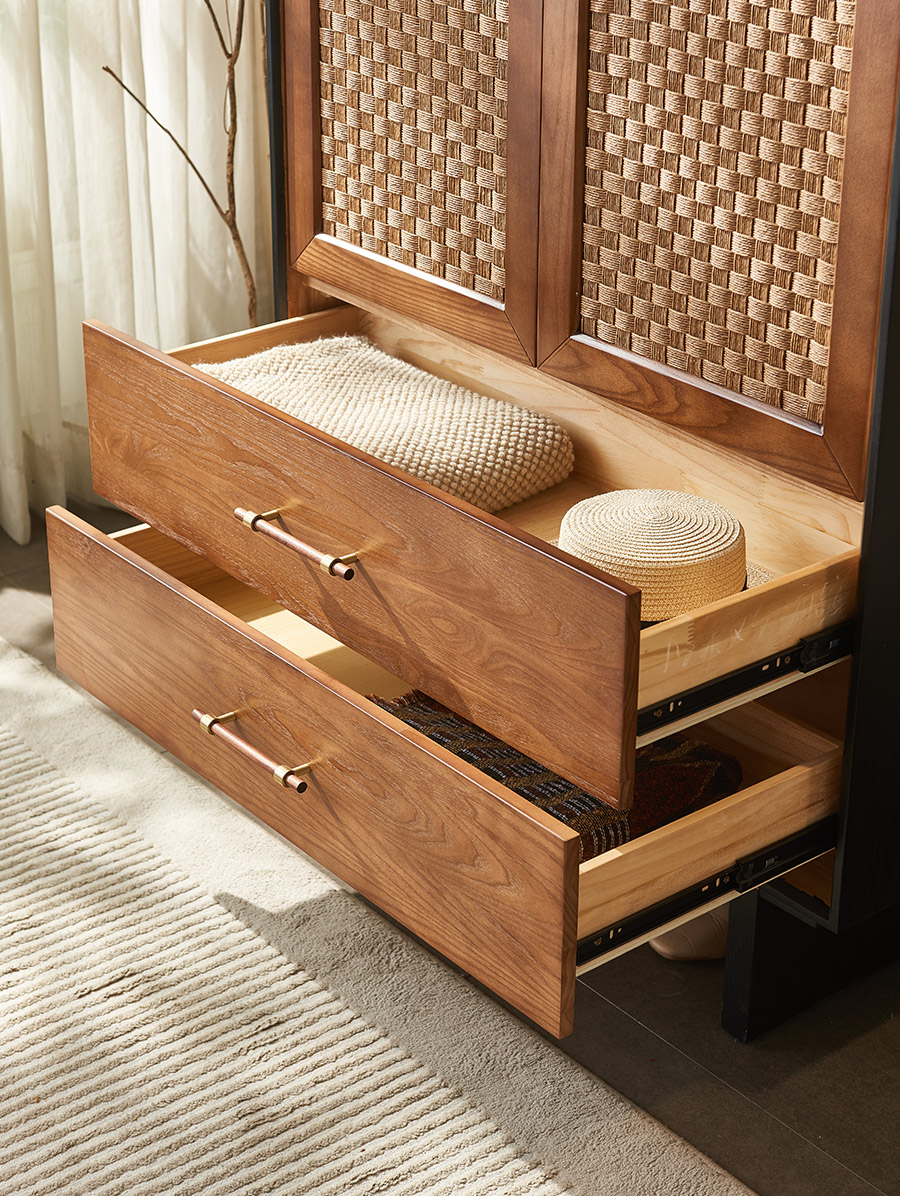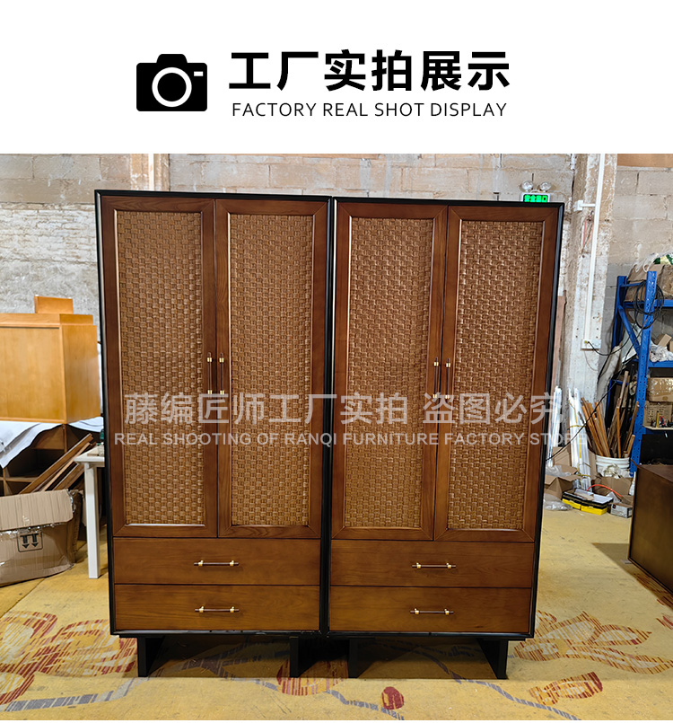 중세 스타일 단단한 나무 등나무 옷장 수납 캐비닛 와비사비 스타일 복고풍 캐비닛 B&B 침실 양문 옷장