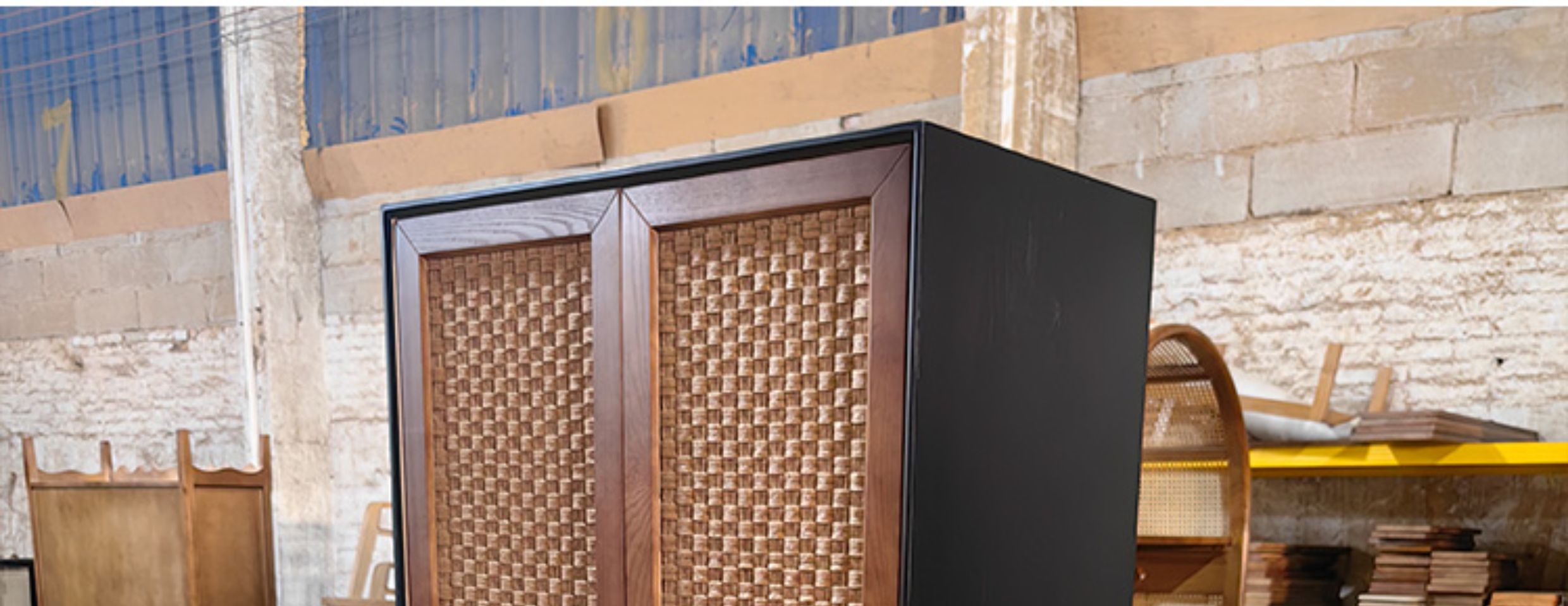 중세 스타일 단단한 나무 등나무 옷장 수납 캐비닛 와비사비 스타일 복고풍 캐비닛 B&B 침실 양문 옷장스토어 가기