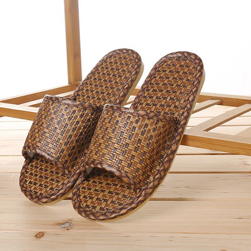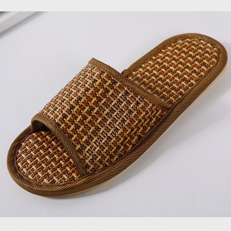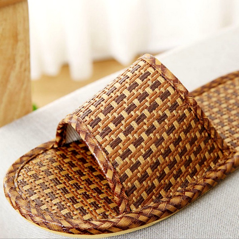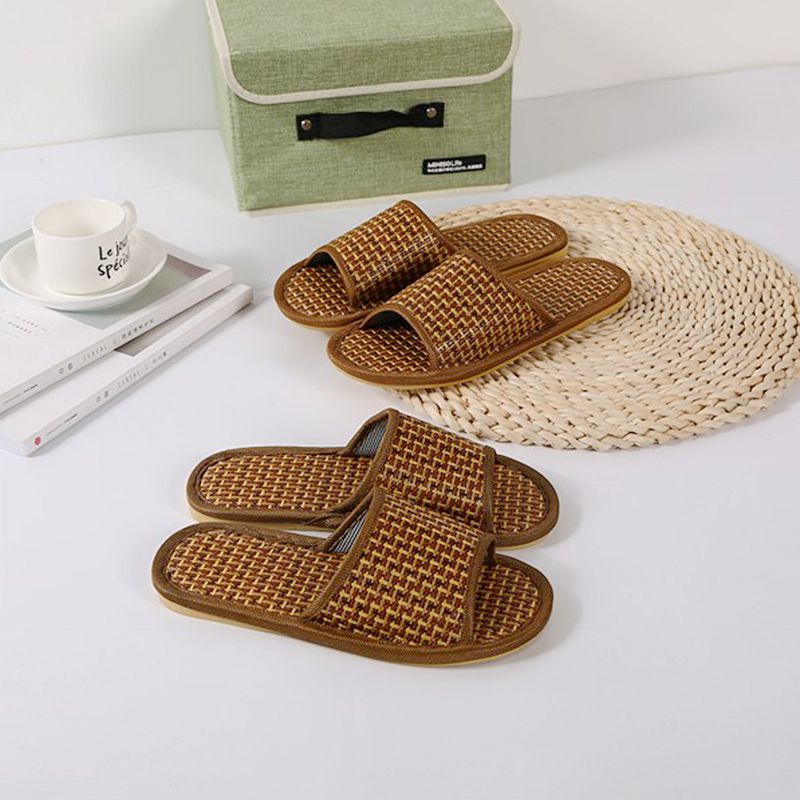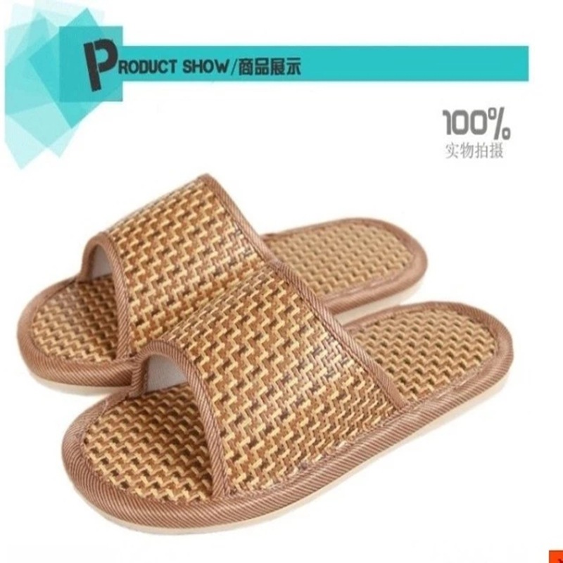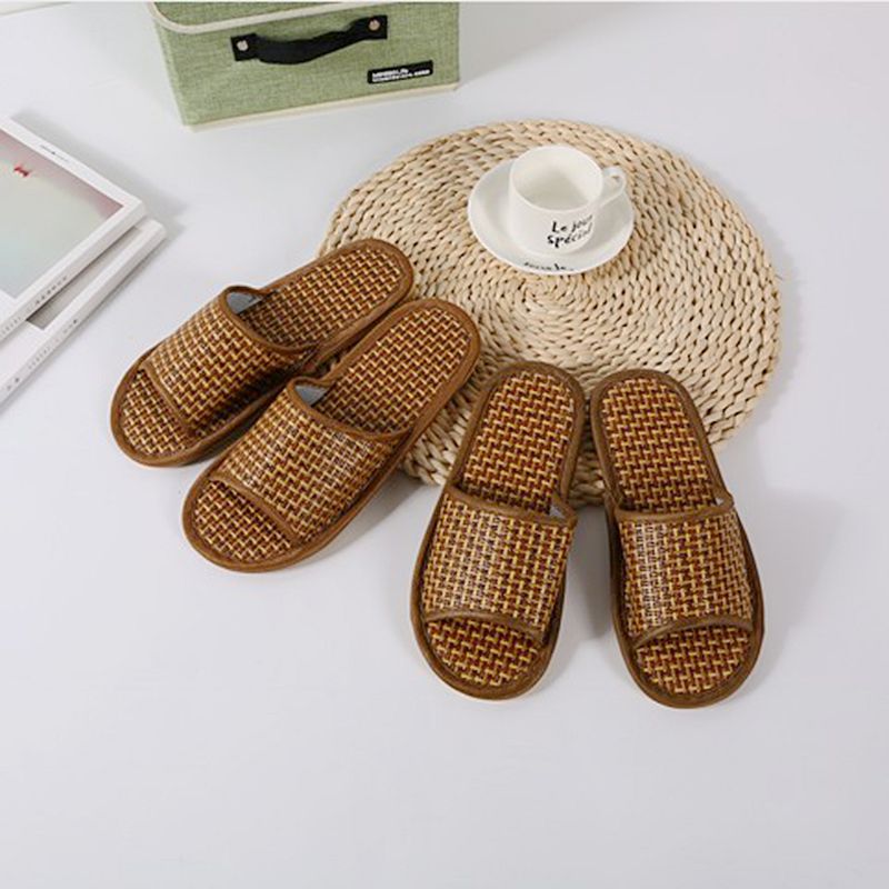 여름 대나무 등나무 밀짚으로 짠 슬리퍼, 가정용 실내 및 실외 편안한 남성과 여성 커플 매트 슬리퍼 도매스토어 가기