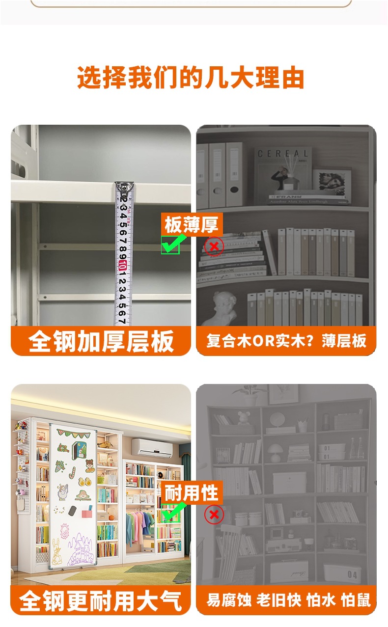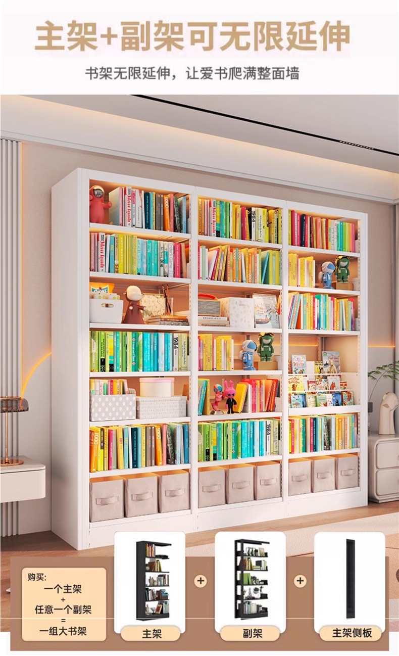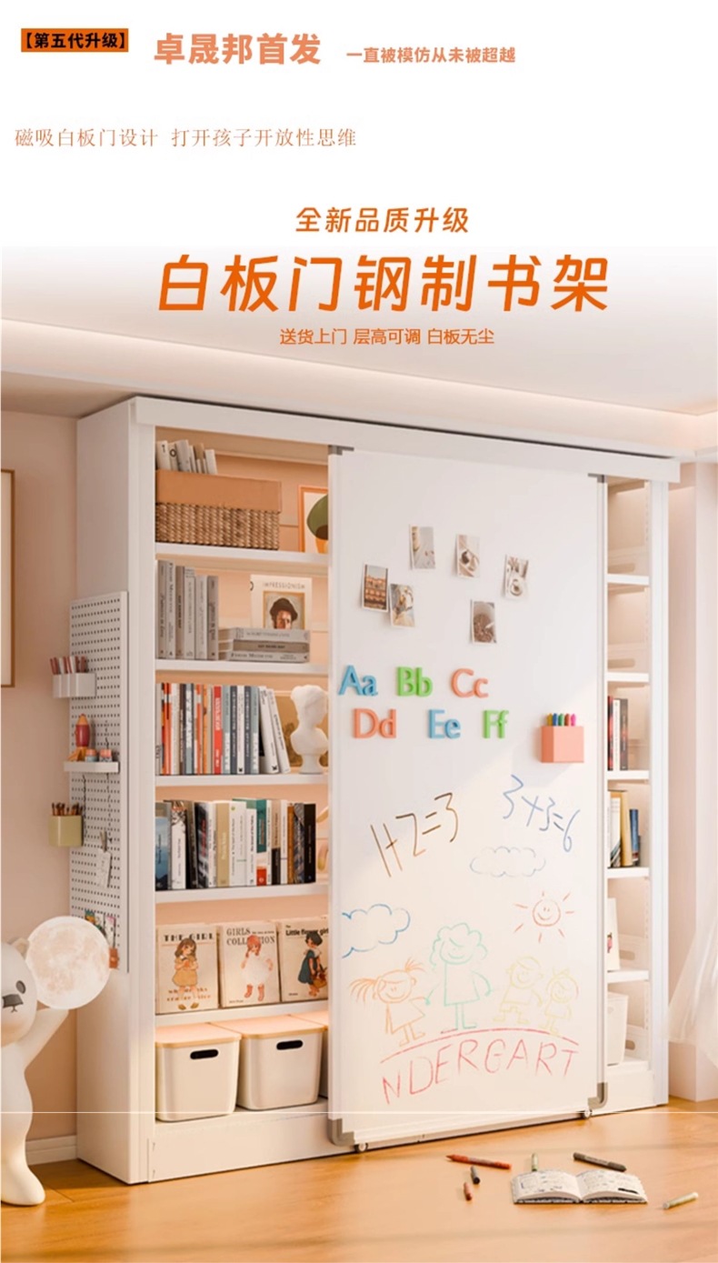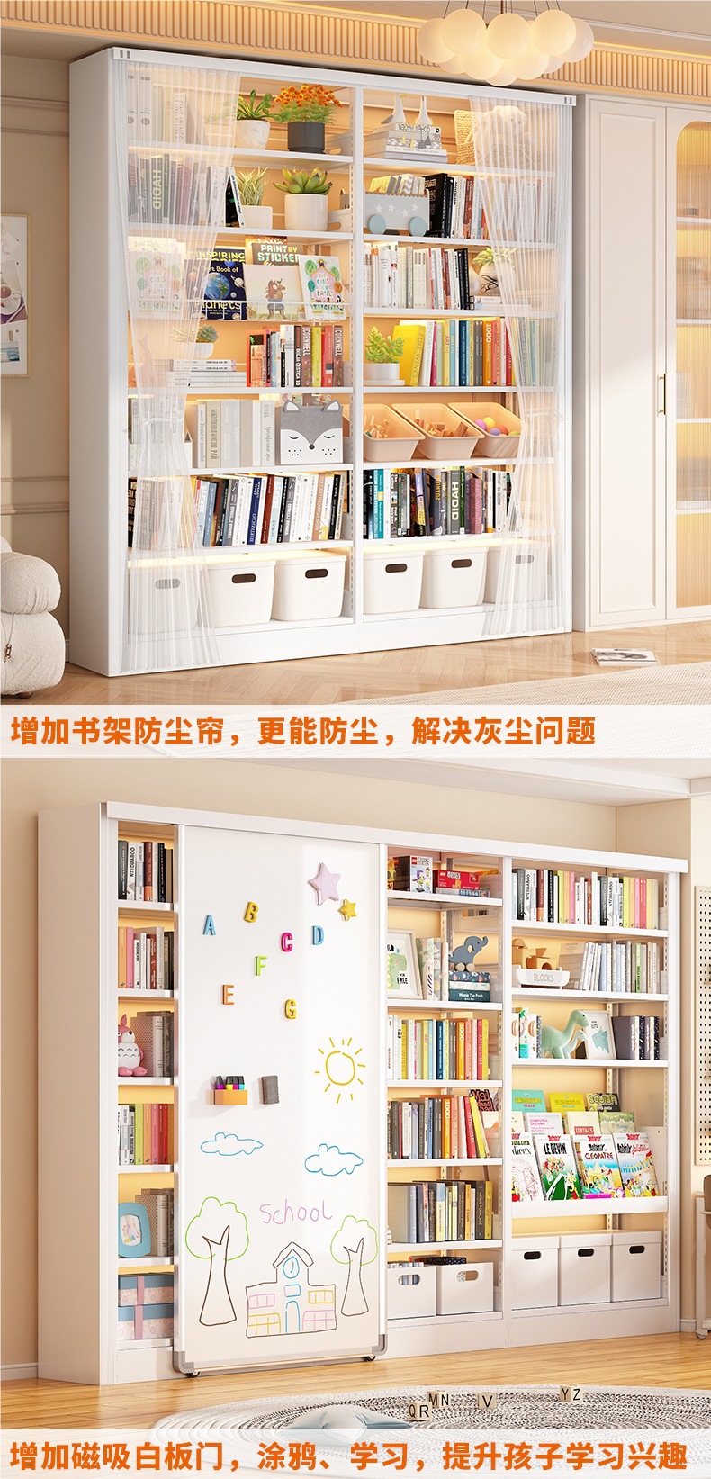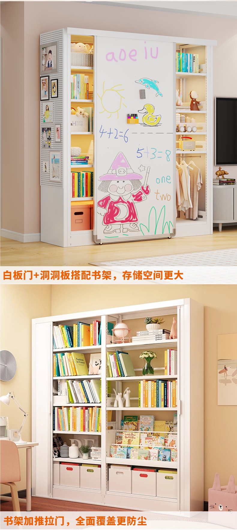 슬라이딩 화이트 보드 도어가있는 가정용 철 책장 거실 침실 바닥 스토리지 랙 책장 조합 어린이 책장스토어 가기