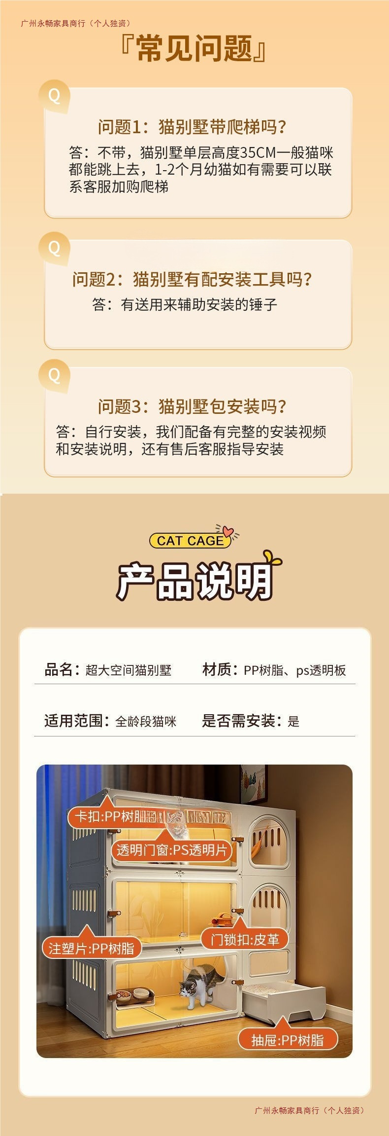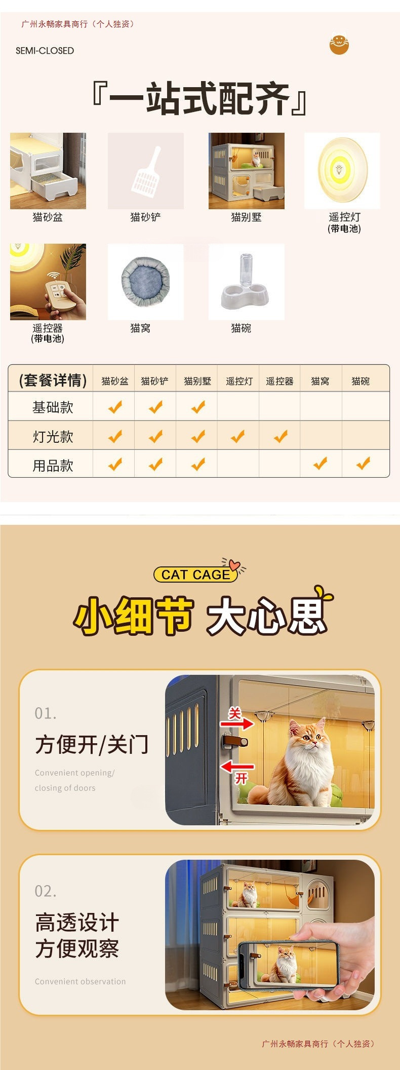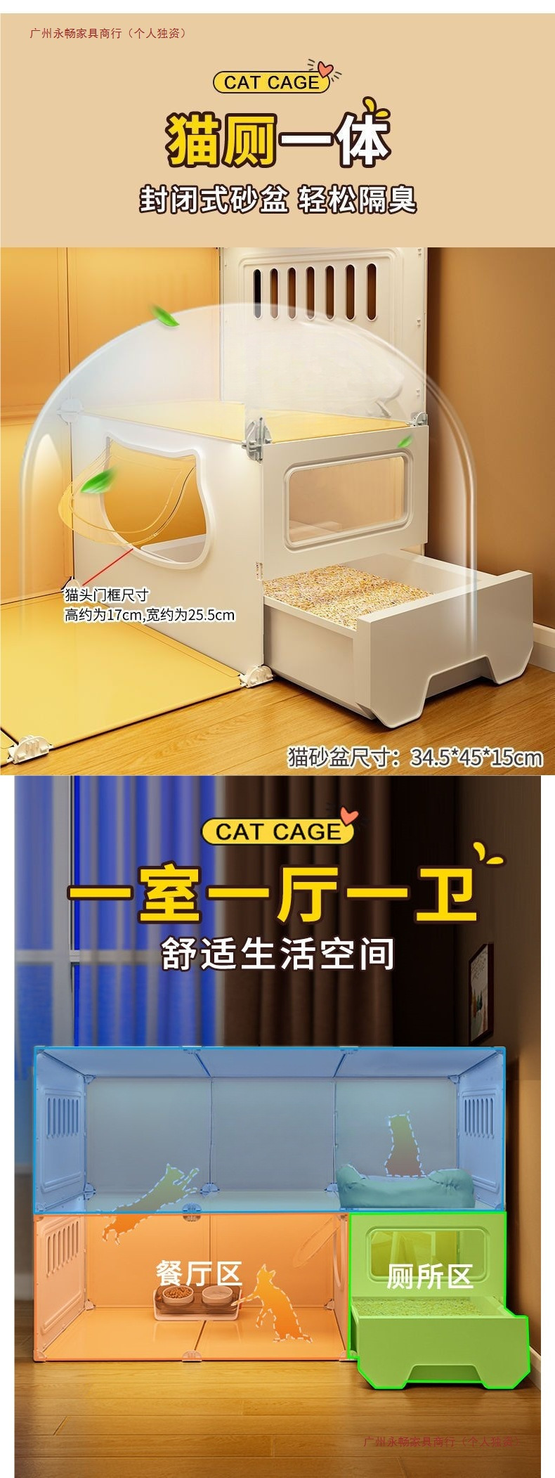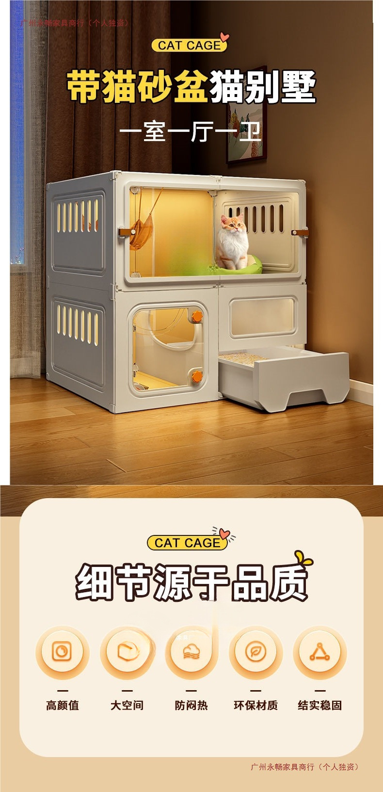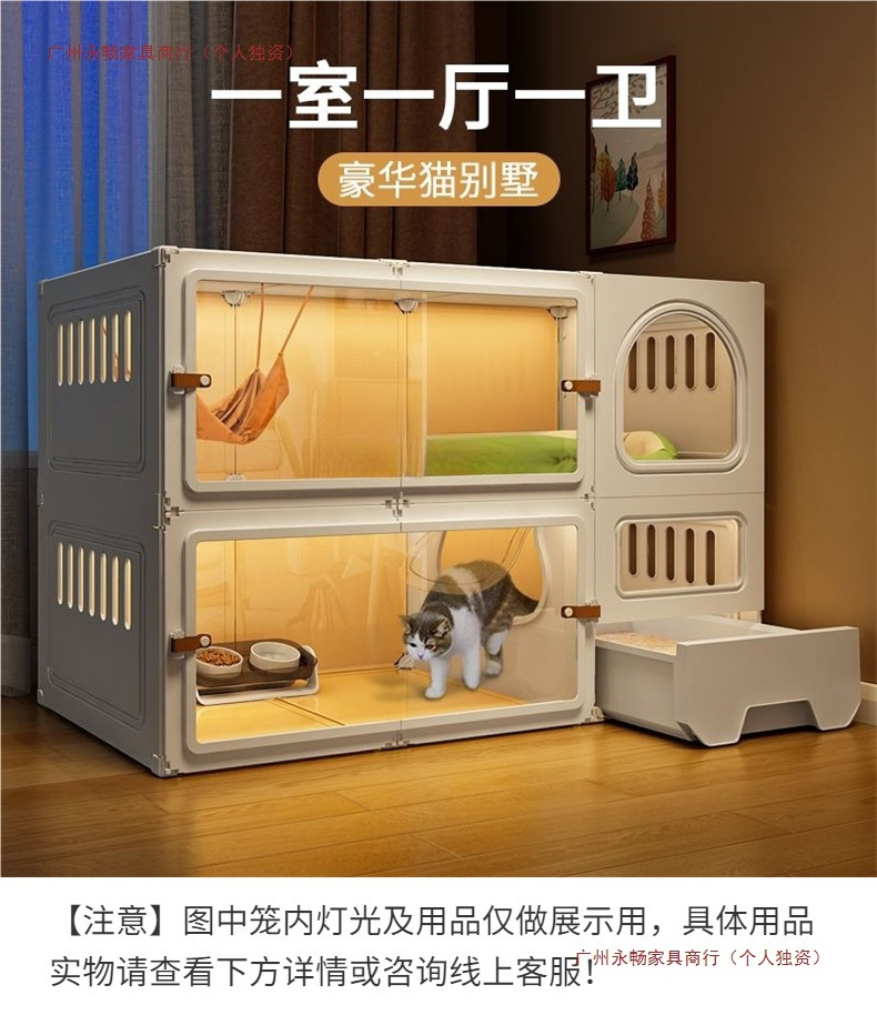 화장실 서랍형 일체형 실내 자유 공간, 침실 1개, 거실 1개, 욕실 1개가 있는 고양이 빌라, 가정용 고양이 케이지