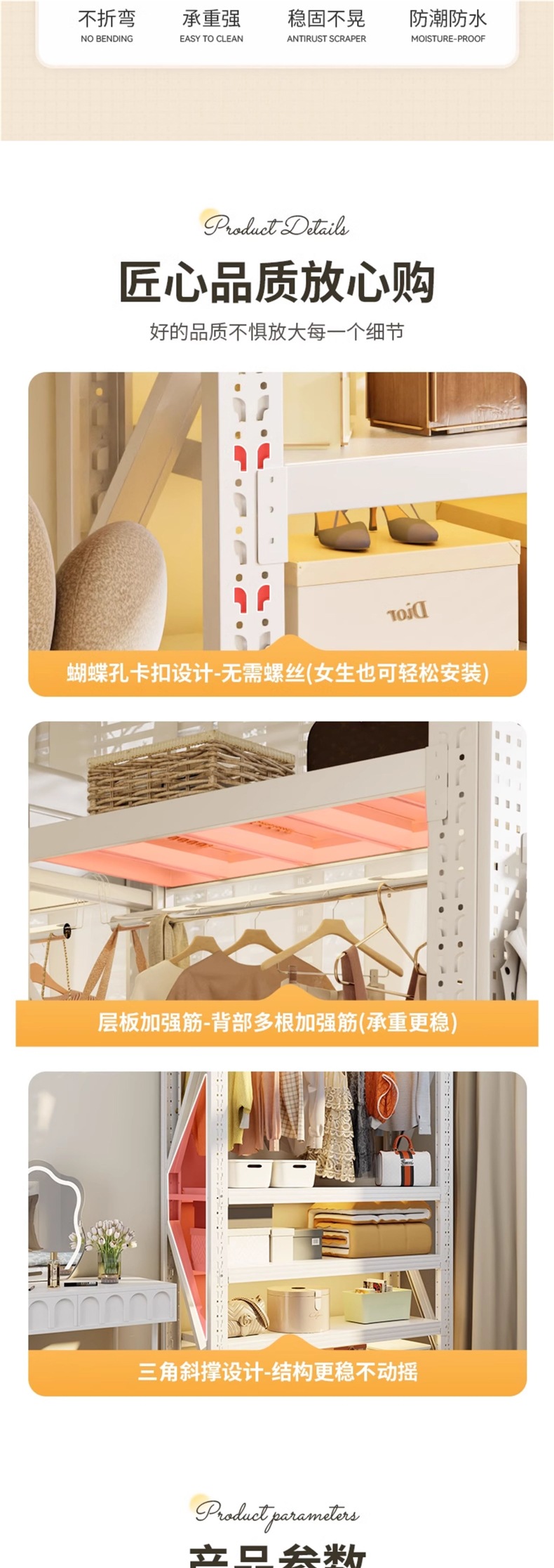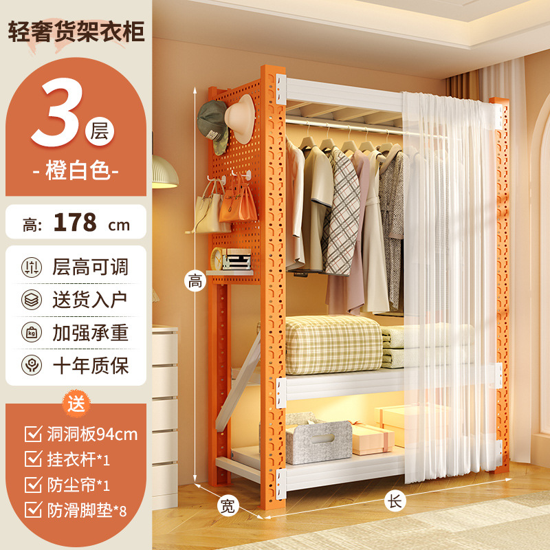 • 주황색과 흰색 조합 모델: 전체 길이 180*깊이 50*높이 200cm [전면 천공판 + 방진 커튼*1 + 옷장레일*3 포함]