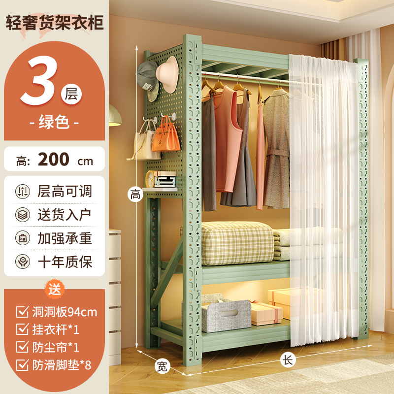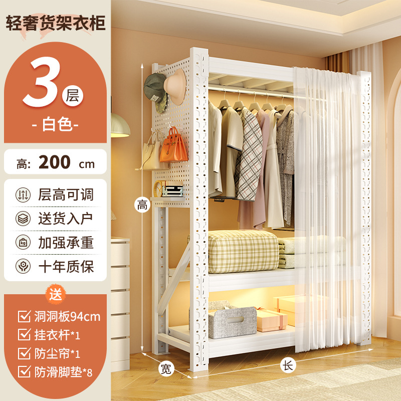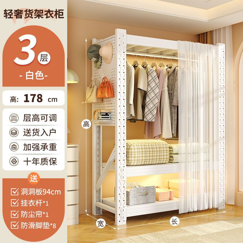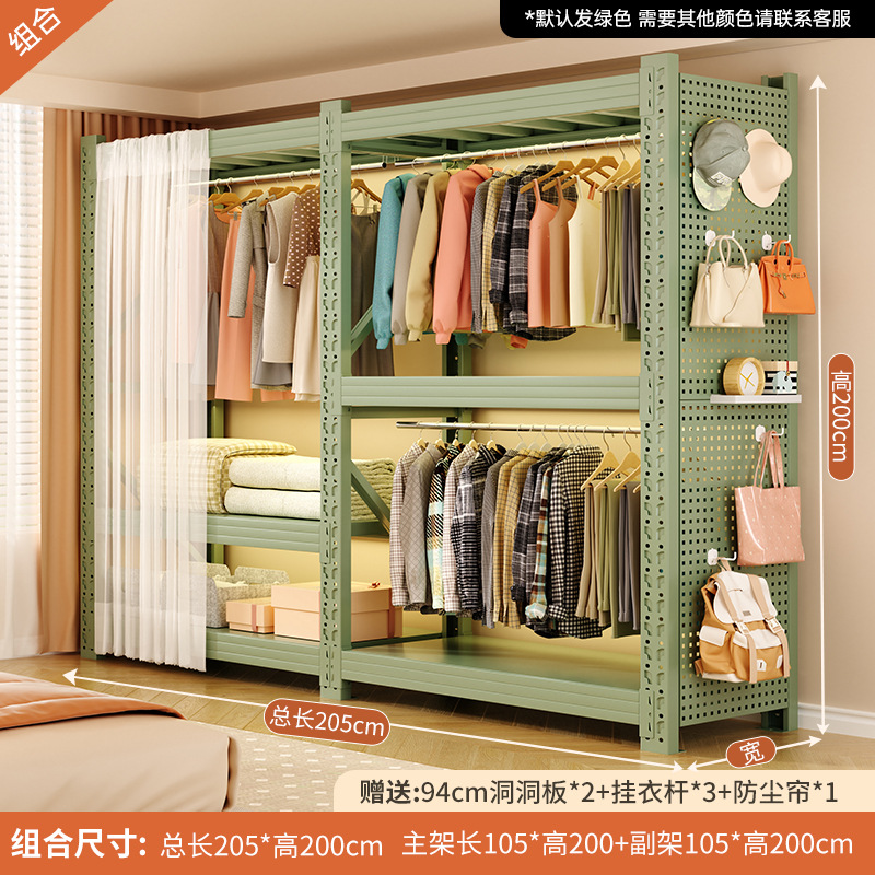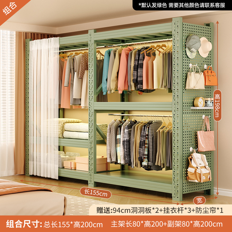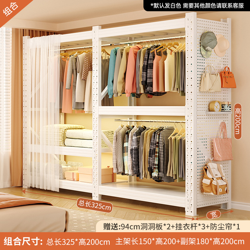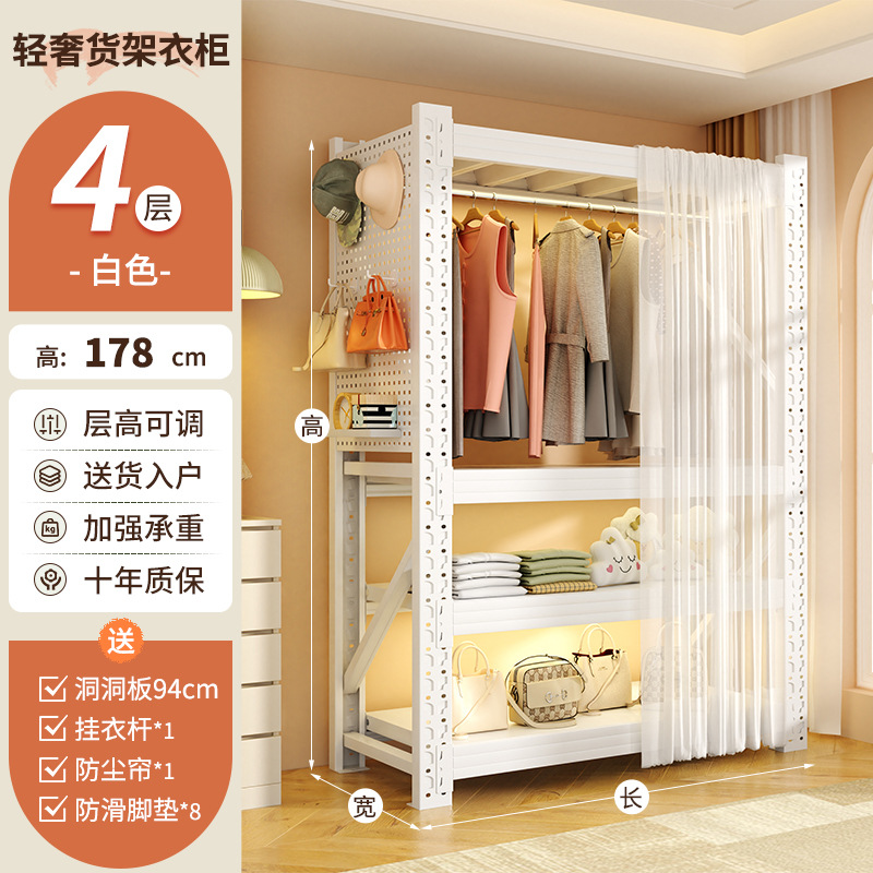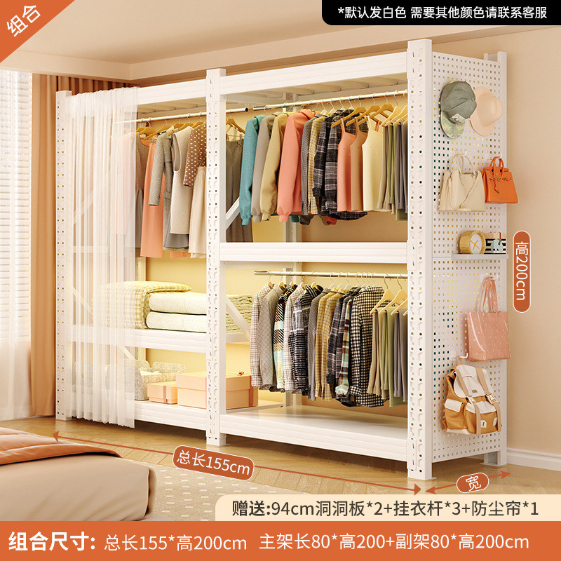 개방형 옷걸이 침실 수납 캐비닛 간단한 조립 바닥 스탠딩 수납 선반 코트 랙 임대실 선반 옷장스토어 가기
