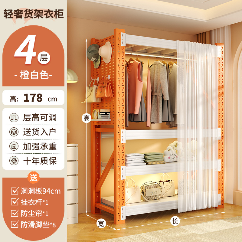 • 주황색과 흰색 조합 모델: 전체 길이 180*깊이 60*높이 200cm [전체 천공판 + 방진 커튼*1 + 옷장레일*3 포함]