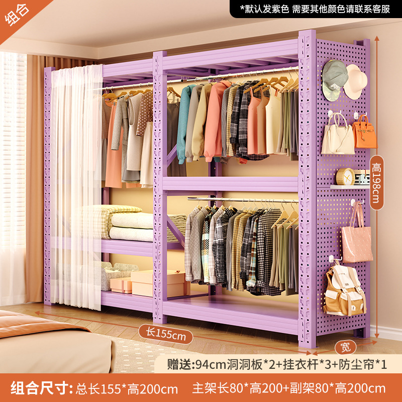 • 보라색 조합 모델: 전체 길이 155*깊이 50*높이 200cm [전체 천공판 + 방진 커튼*1 + 옷장레일*3 포함]